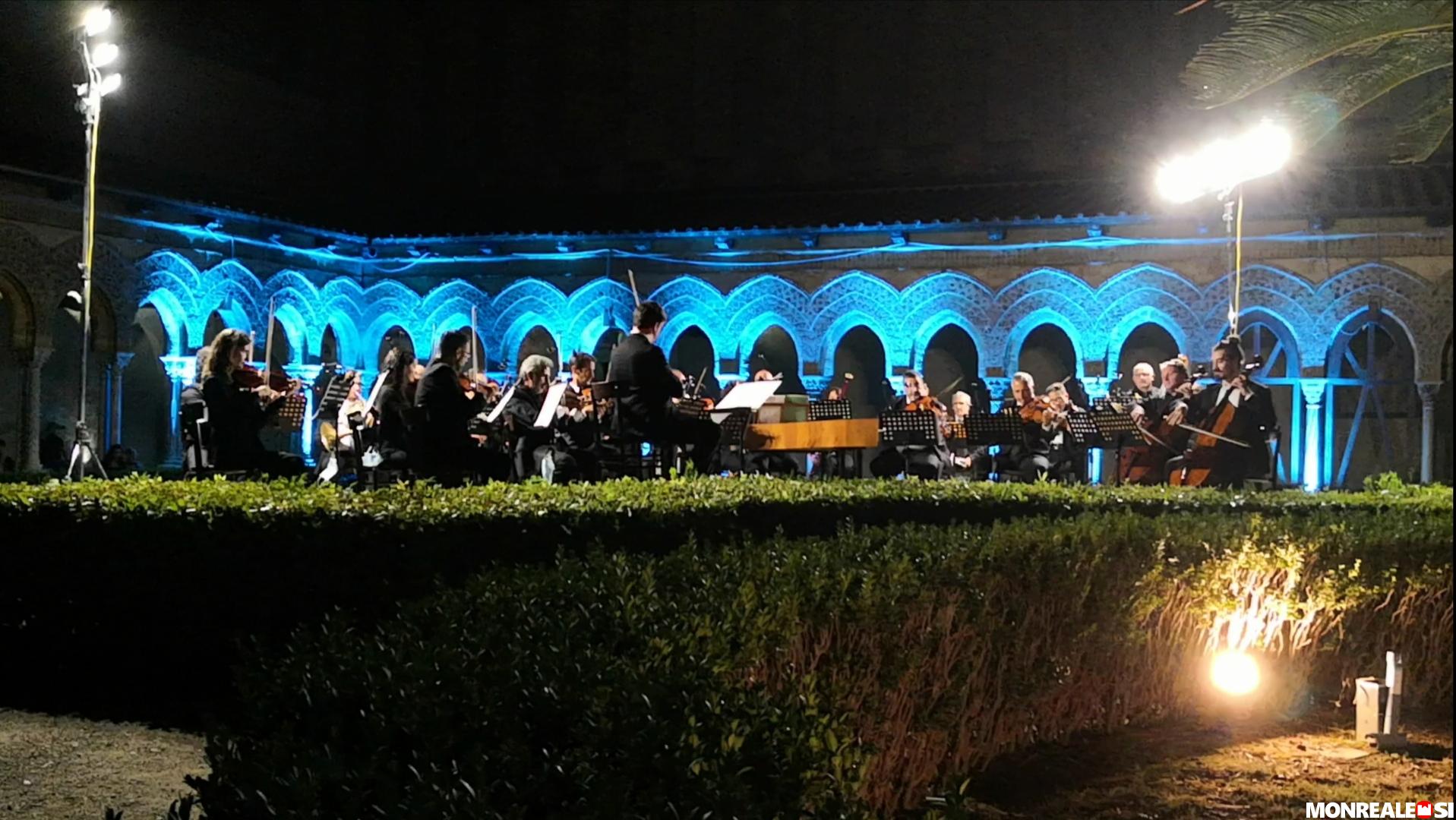 Deliziosa serata al Chiostro dei Benedettini di Monreale ieri sera con il concerto dell’Orchestra Sinfonica Siciliana. Sotto una luce azzurra, i musicisti della Sinfonica hanno offerto le melodie sublimi della “Musica sull’acqua” di George Friederich Haendel. Un appuntamento inserito nel calendario del “Festival delle Musiche” del Comune di Monreale.