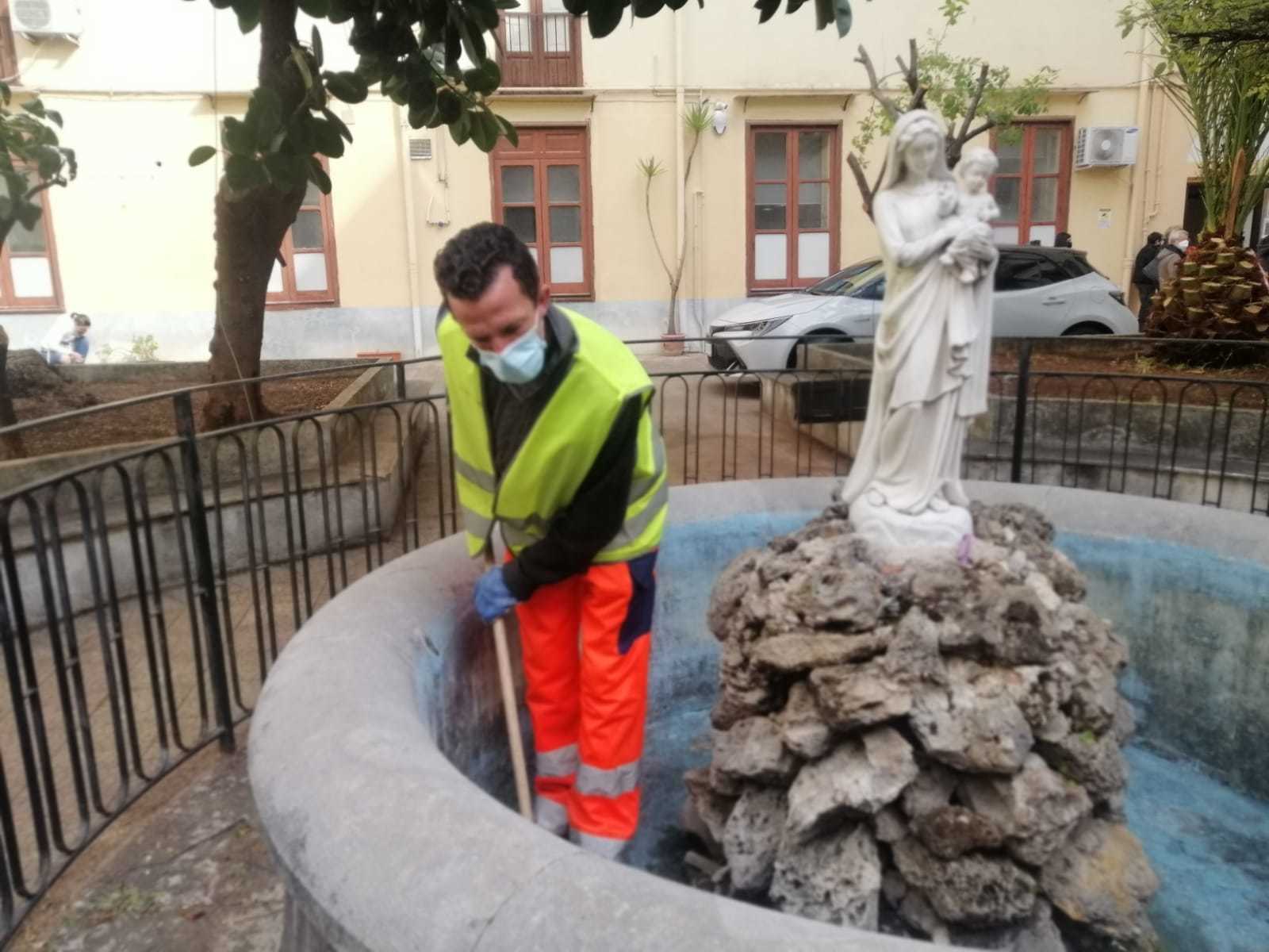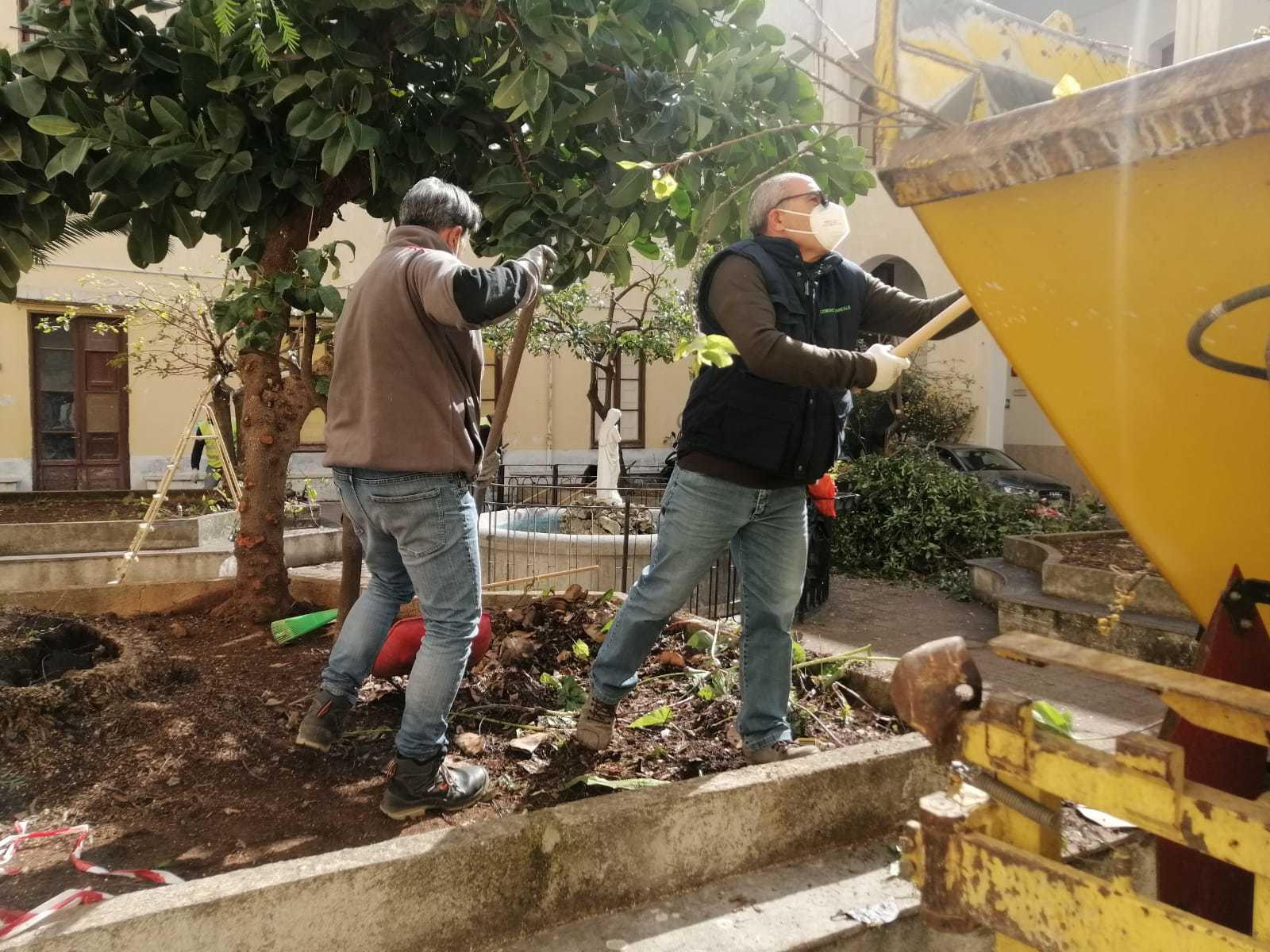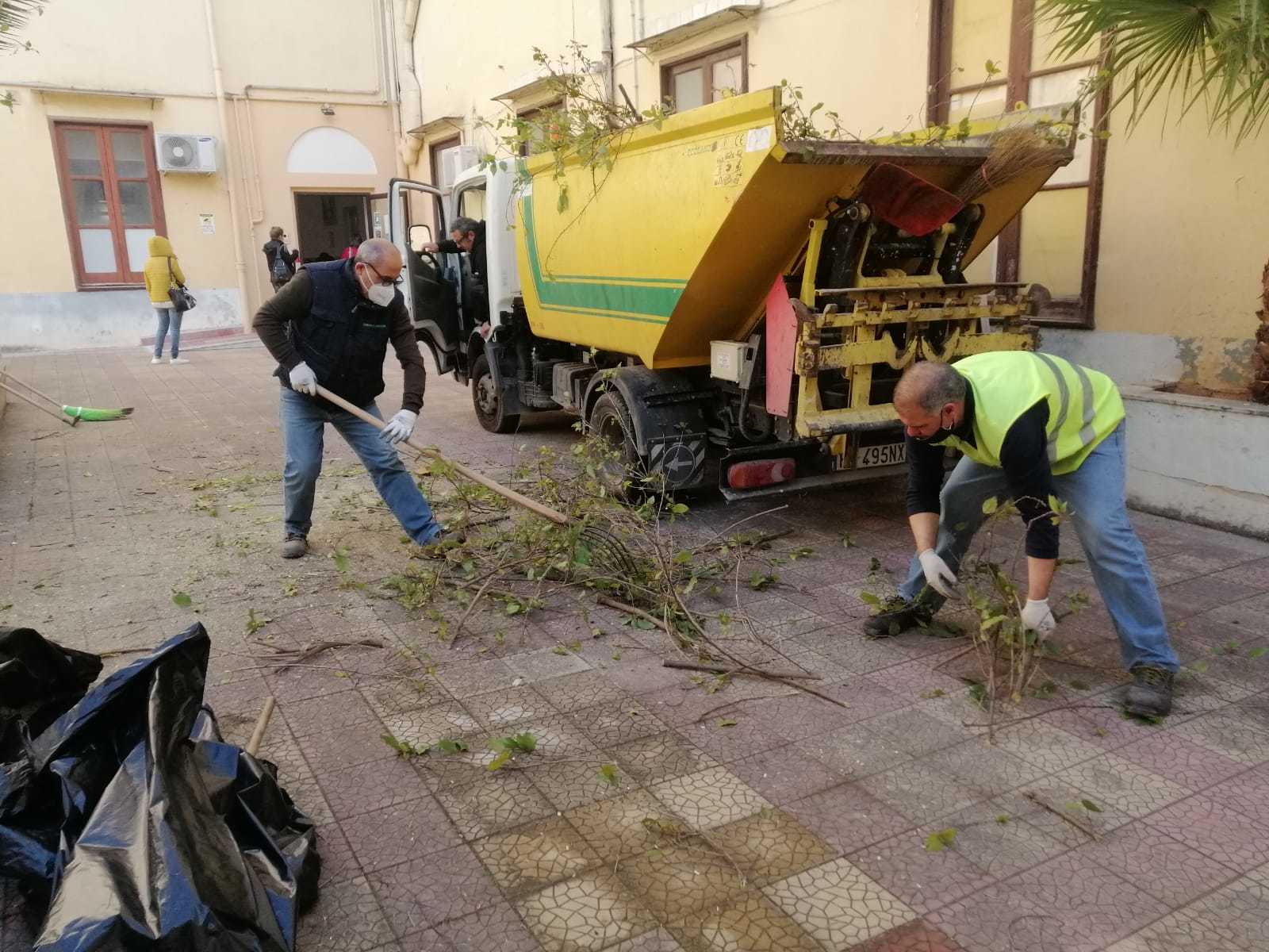 Dipendenti comunali e volontari hanno completato la potatura di tutti gli alberi e la rimozione delle risultanze. Il lavoro è stato eseguito dalla squadra di Ninni Di Salvo composta da esperti potatori e con la collaborazione dei volontari di Basta Crederci, coordinati da Giovanni Terranova e Piero Faraci.