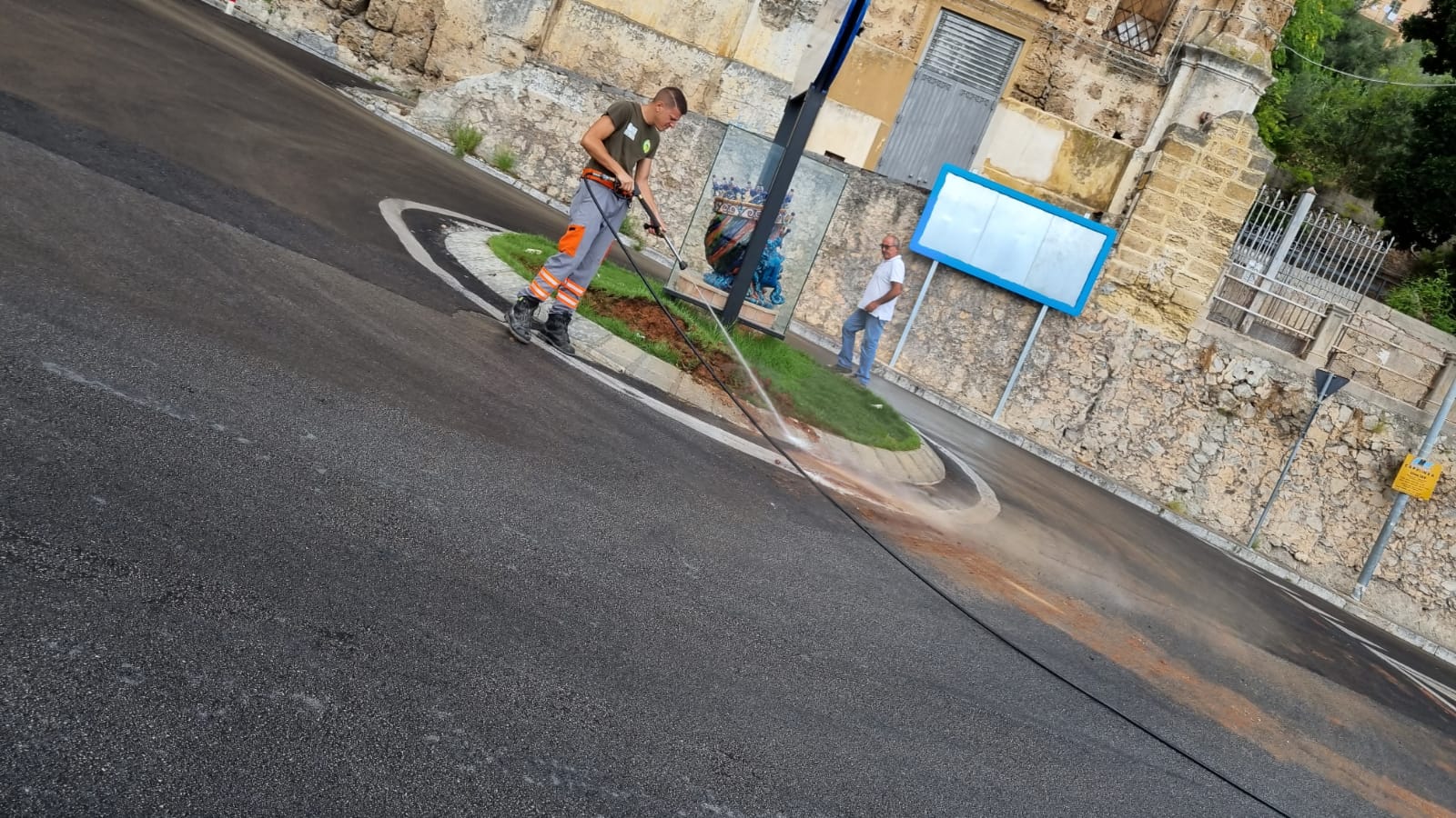 Un pullman danneggia la piccola rotatoria che si trova tra via Palermo e via Benedetto d’Acquisto. La vicenda si è svolta questa mattina quando l’autista di un pullman che trasportava alcuni turisti ha eseguito una manovra errata andando a rovinare il manto erboso posto sotto l’opera d’arte donata dal maestro ceramista monrealese Nicolò Giuliano. Per fortuna l’opera non è stata danneggiata dal mezzo pesante.