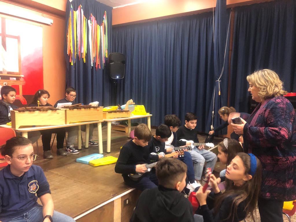 - In Aula Magna il laboratorio musicale per presentare le attività di propedeutica vocale e strumentale. La nostra scuola è infatti a indirizzo musicale fin dalla classe prima della scuola primaria.