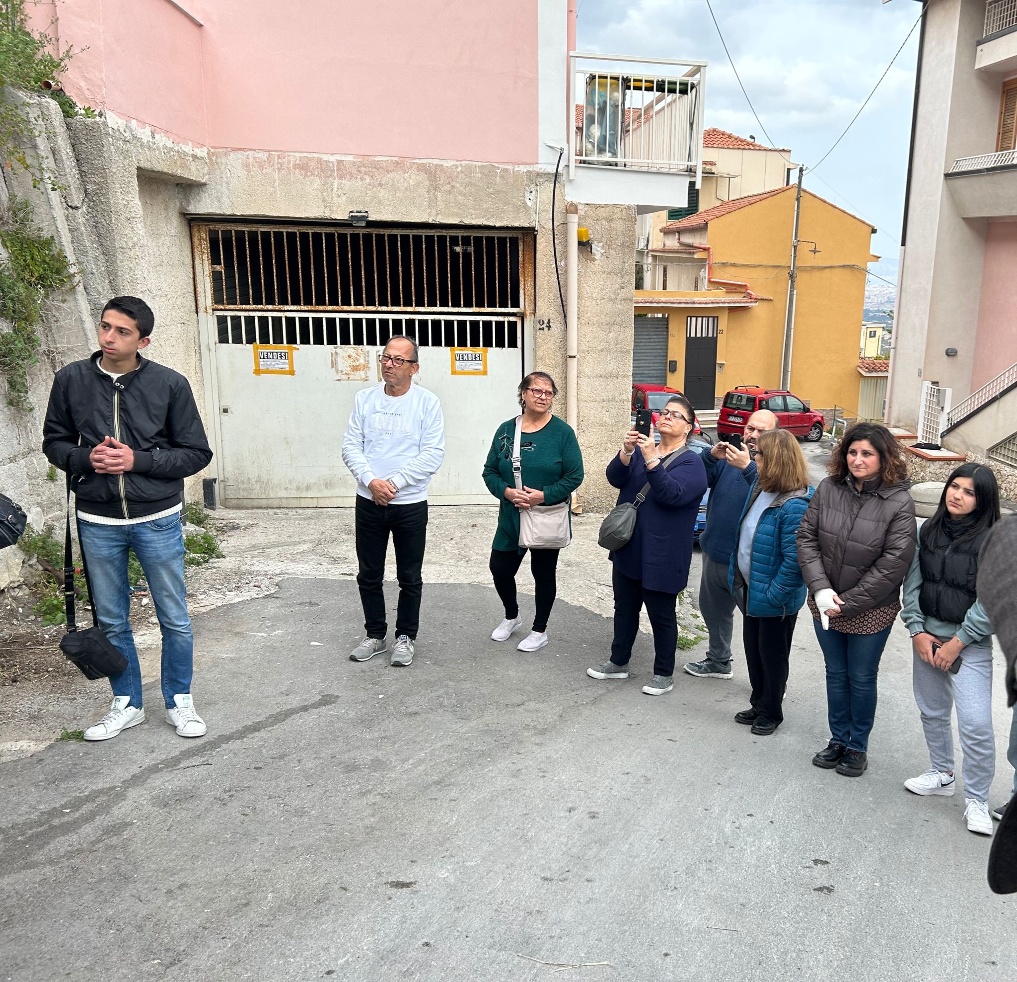 Alla consegna dell’immagine di Biagio Conte c’erano don Palmeri della chiesa di San Vito, il sindaco Alberto Arcidiacono e il consulente Salvatore Giangreco. Erano presenti anche molti residenti dello storico quartiere monrealese.