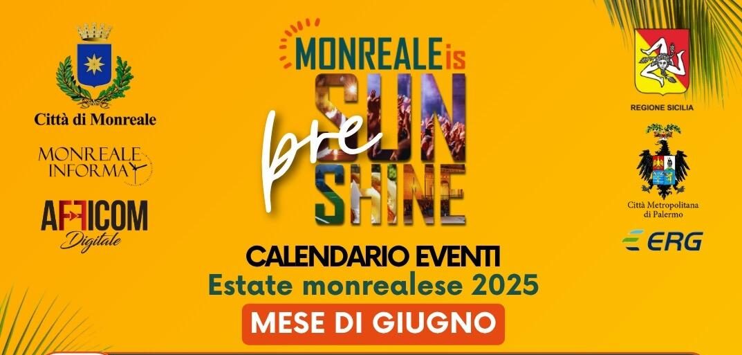 L’Amministrazione Comunale di Monreale è lieta di presentare “Giugno Sotto le Stelle”, il primo assaggio del ricco calendario di eventi estivi racchiuso sotto il nome di “MONREALE IS SUNSHINE 2025”.