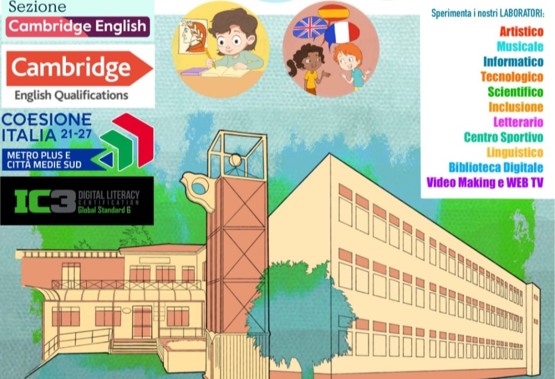 L’offerta formativa, già diversificata e plurivoca, declinata in diverse opzioni formative, da quest’anno si presenta ancora più ricca con l’attivazione, sin dalla scuola primaria, di una sezione di inglese potenziato, che prevede l’insegnamento dell’inglese come unica lingua comunitaria e il conseguimento delle certificazioni Cambridge.