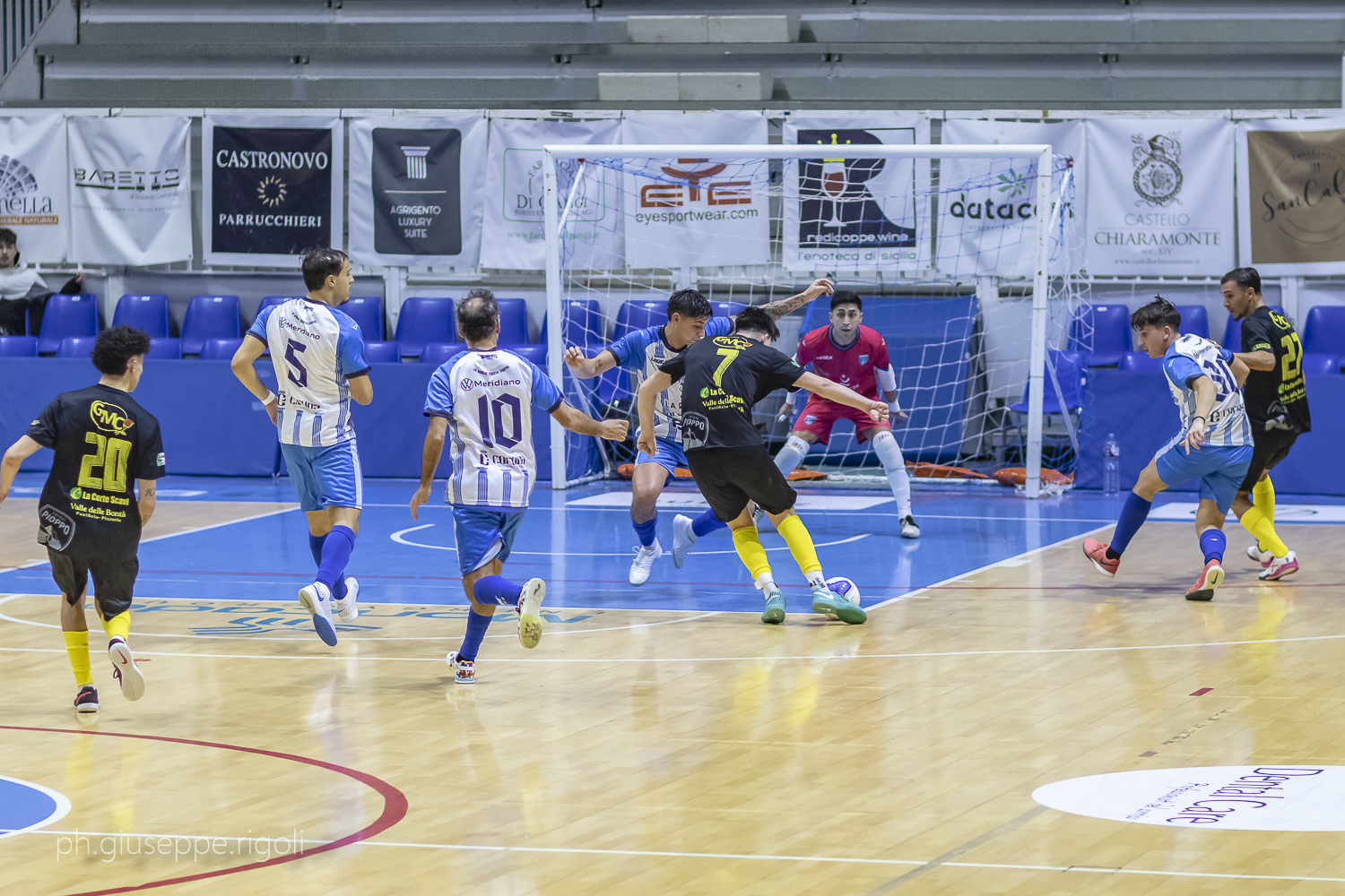 Sabato pomeriggio amaro per i gialloverdi di mister Basile che escono sconfitti dal PalaMoncada di Porto Empedocle per mano dell’Agrigento Futsal; non bastano una super prestazione e le innumerevoli parete di Marineo al Pioppo Futsal per agguantare punti importantissimi in un campo difficile. Il match parte subito con ritmi altissimi con i locali che assediano la metà campo dei gialloverdi, ma a trovare il vantaggio sono proprio gli ospiti con Ferrara. Il 19 è bravo a credere fino alla fine su un pallone che sembrava terminare in rimessa laterale, recupera la sfera e sorprende Guerrero. Il raddoppio arriva con Prestigiacomo, che su punizione trova lo spazio giusto per insaccare in rete. Il doppio vantaggio gialloverde dura poco, ai biancoazzurri bastano 30 secondi per riportare il match in pareggio prima della sirena con Castiglione e Montes. Secondo tempo che si apre con i padroni di casa più propositivi e bravi a concretizzare: prima trovano il vantaggio con Castiglione e poi allungano nuovamente sul risultato con Beddoura. I pioppesi sono duri a morire e lo dimostrano ancora una volta: Ferrara porta il match sul -1 e successivamente Calvaruso si gira in un fazzoletto nell’area del portiere e manda in rete un missile terra-aria per il momentaneo 4-4. Il pareggio dura pochissimo, con Montes che delizia i presenti con un’altra rete per il finale 5-4. Nei minuti finali i gialloverdi rimangono in inferiorità numerica, ma nonostante ciò restano a galla grazie all’ottimo gioco in inferiorità numerica e alle innumerevoli parate di Marineo; quest’ultimo ha commentato così il match: “Sapevamo di affrontare una delle squadre più forti del campionato, sia per le sue individualità che per la forza del collettivo. Nonostante le tantissime assenze abbiamo disputato una grandissima partita, fatta di sacrificio e lotta su ogni pallone, non posso che fare i complimenti a tutti per la prestazione. Sicuramente c’è un po’ di rammarico sia per non aver portato punti a casa dopo una prestazione simile sia perché questa sconfitta ci porta alla terza partita senza vittoria. In settimana lavoreremo al meglio per preparare la prossima partita contro il San Vito, match è importantissimo per le nostre ambizioni.”