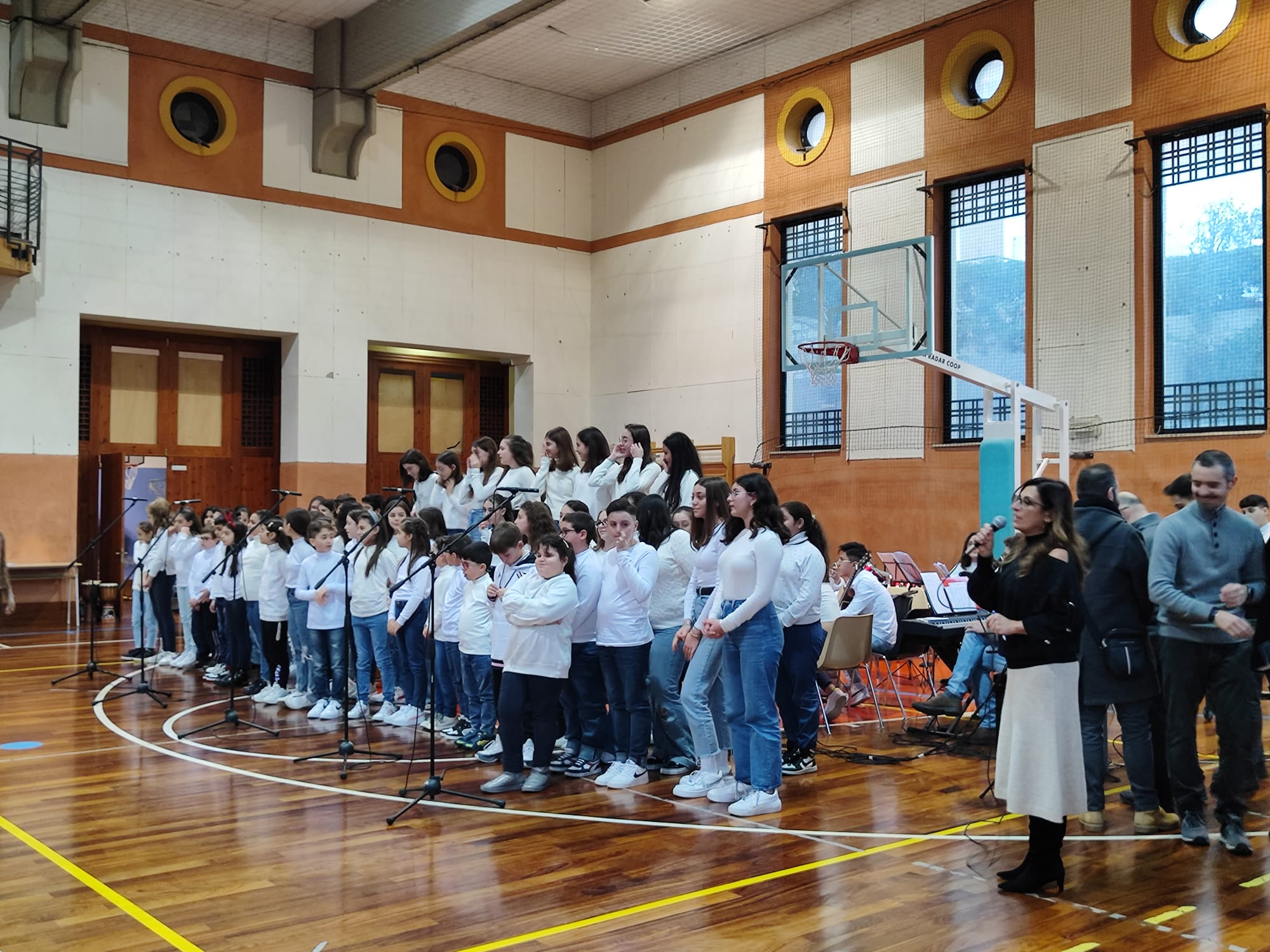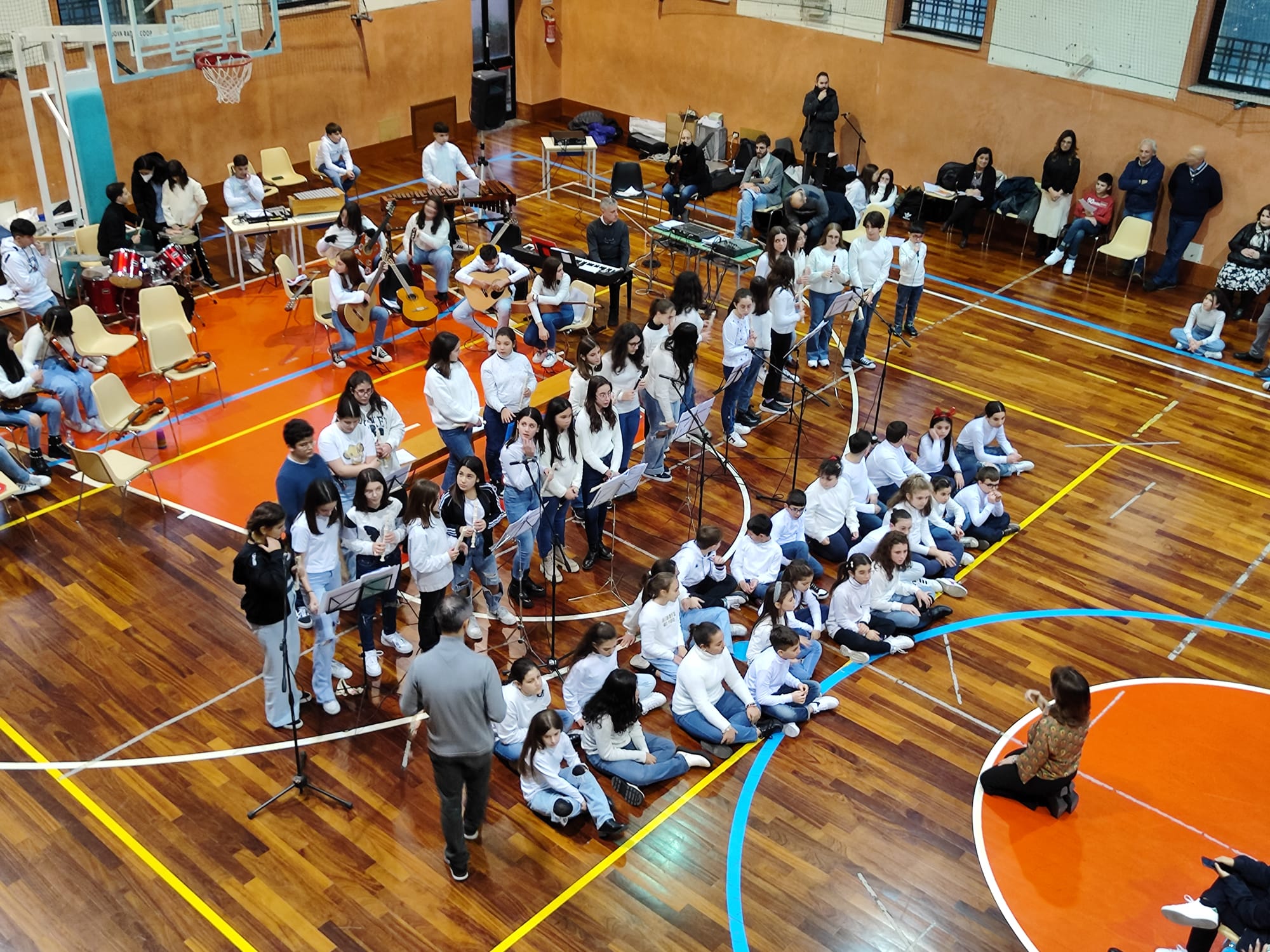 Finalmente in presenza di un pubblico caloroso, si sono esibiti oggi pomeriggio, nella grande palestra del plesso Veneziano, il coro polifonico e l’orchestra didattica della scuola in cui piccoli e grandi hanno cantato e suonato insieme.