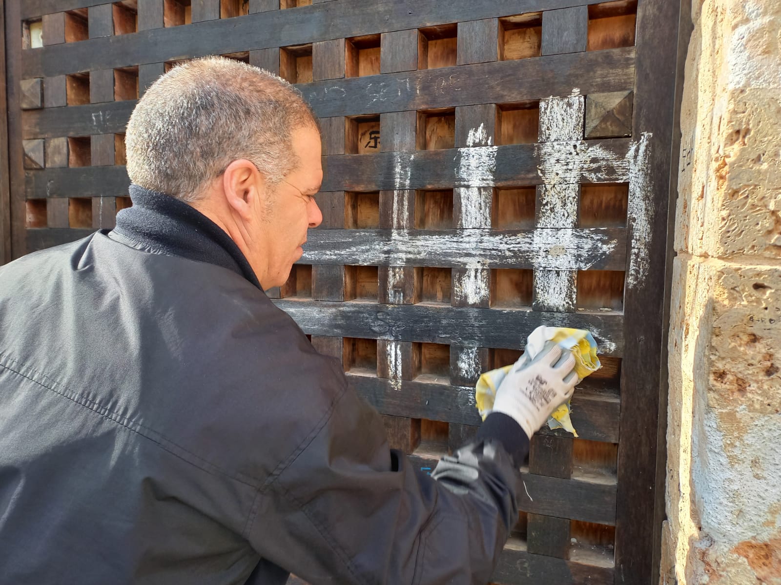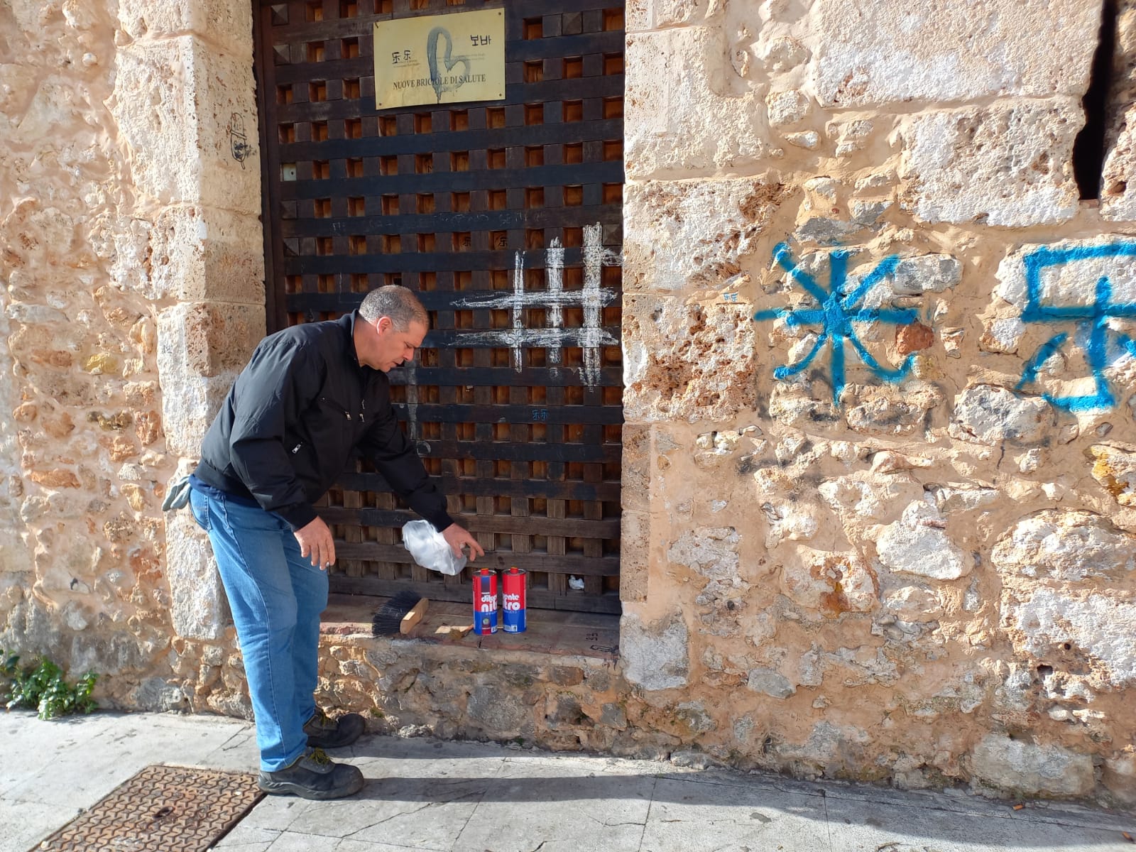 Piero Faraci, del gruppo Basta Crederci, insieme al caposquadra Giovanni Terranova del gruppo di volontari di Palermo, con le direttive dell’amministrazione Alberto Arcidiacono e con Ninni Di Salvo , hanno iniziato a dare dignità a quell’angolo della piazza Guglielmo in cui alcuni ragazzi con delle bombolette hanno lasciato con un brutto biglietto da visita ai tanti turisti che ogni giorno vengono a visitare la nostra Monreale.