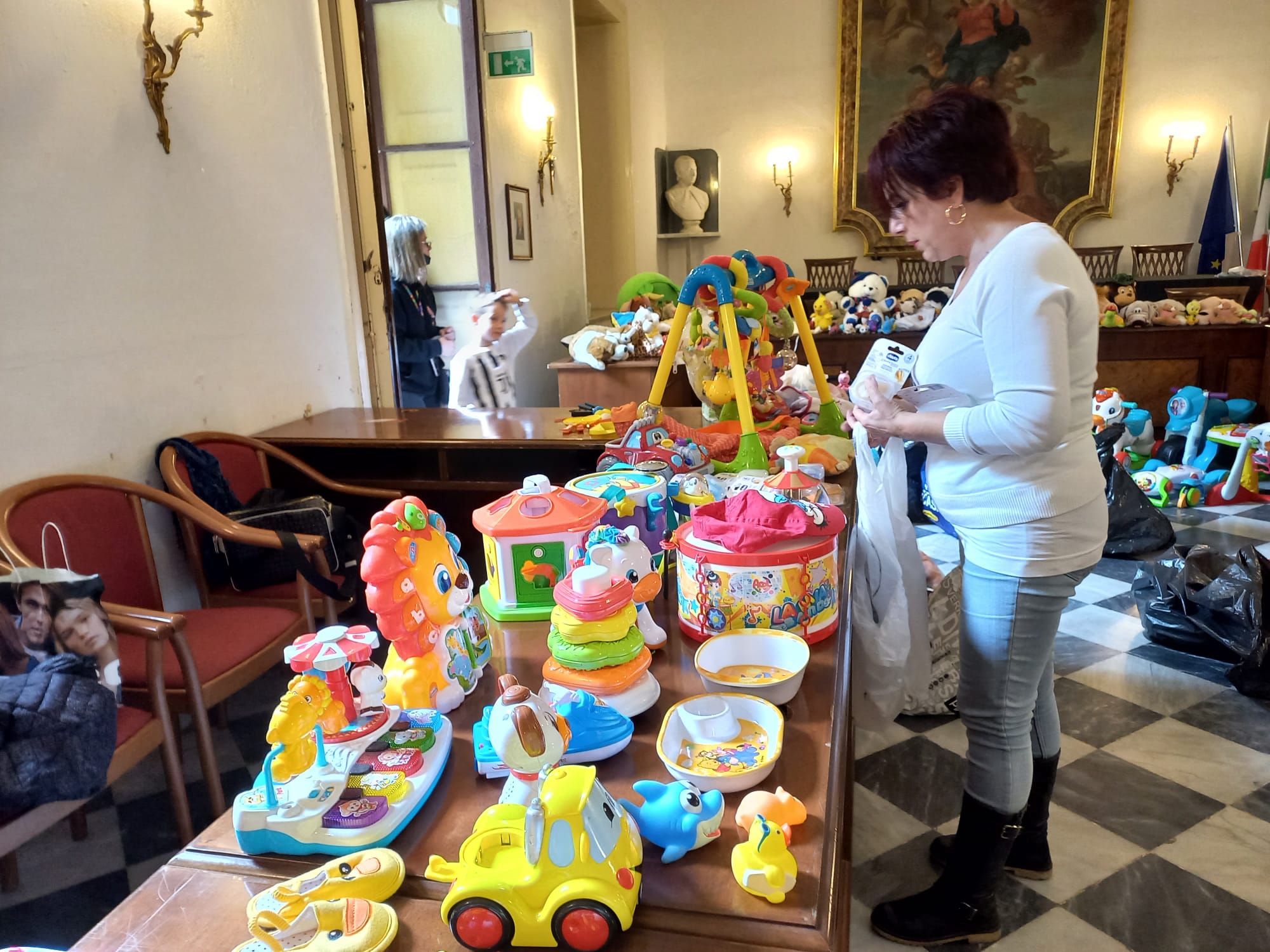 Erano circa 160 bimbi che con pazienza hanno aspettato per prendersi cio che poteva piacere. Donati macchinine, pelush, pattini, giochi da tavolo, puzzle, lego, bici e questa volta regali anche i più piccoli dai 3 mesi in poi: con ciucci, sonaglini, carion e poi cappellini, sciarpe.