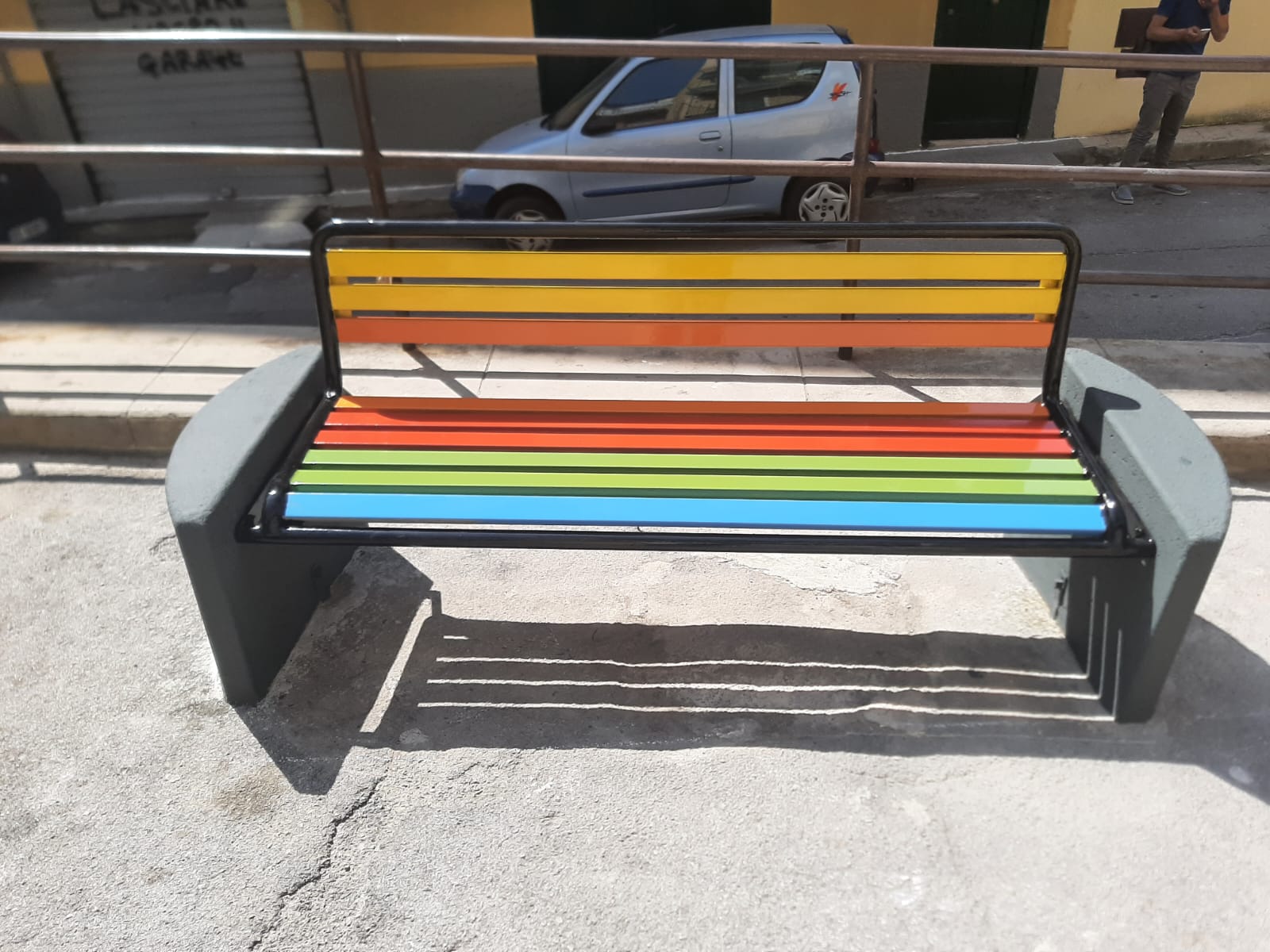 Monreale – Una ventata di colore e positività nel centro storico di Monreale. Nella piazzetta di via Sciarrino è stata installata una panchina arcobaleno, simbolo di pace e fratellanza tra i popoli. Installato anche un pannello con il volto di Mahatma Gandhi.