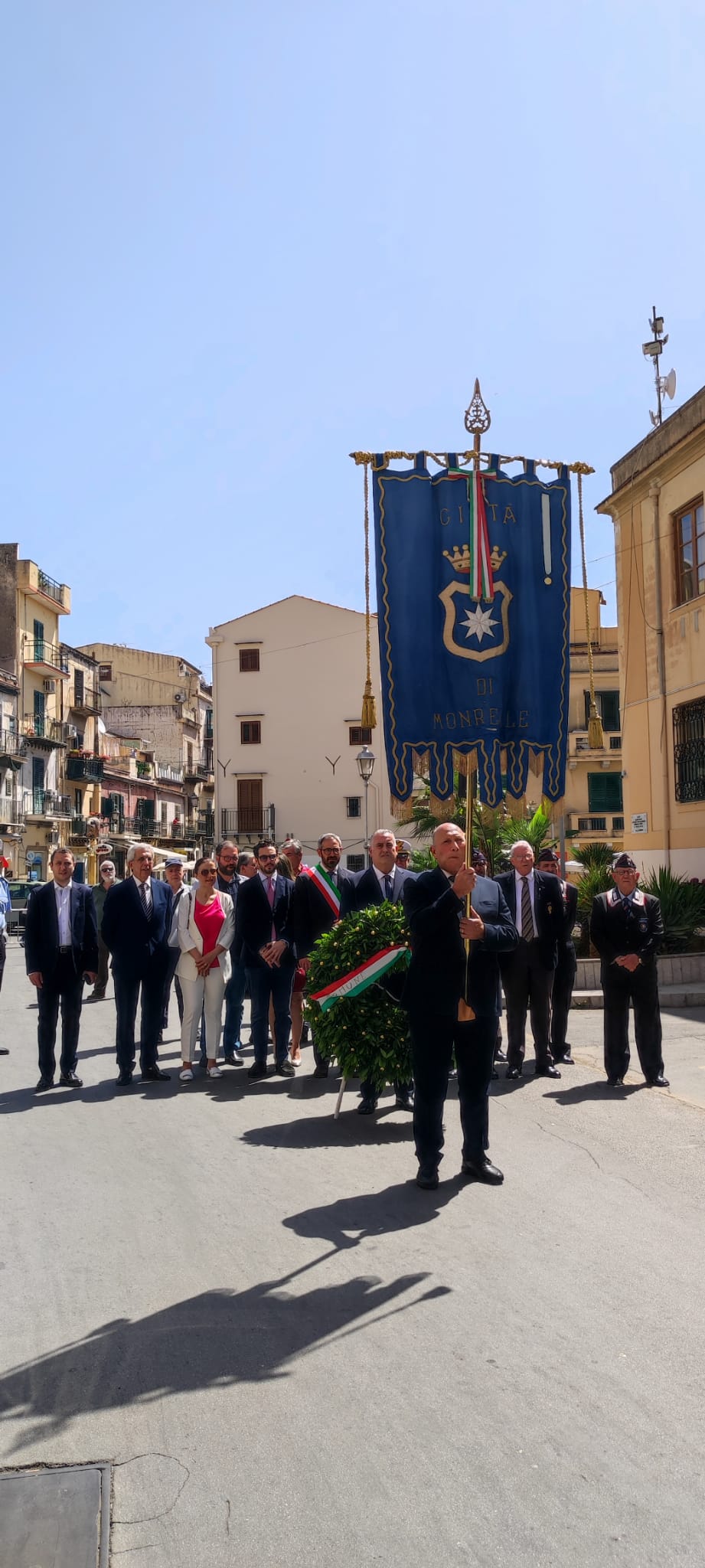 La Festa della Repubblicana Monreale con l’amministrazione comunale che depone una corona davanti al monumento ai Caduti di piazza San Castrense.