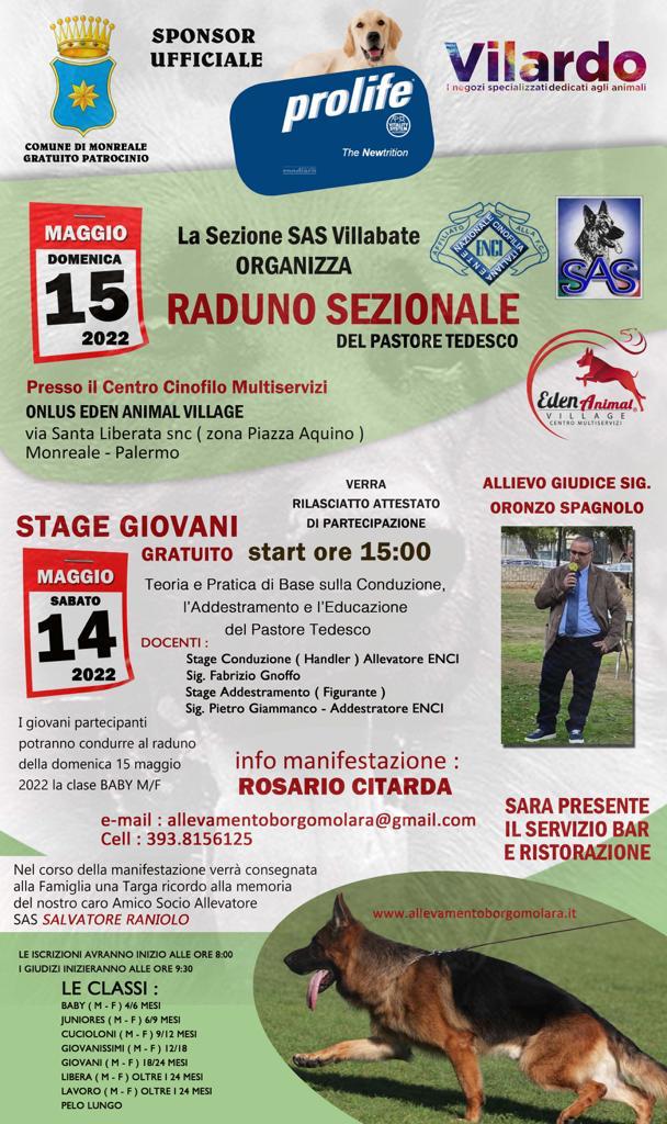A Monreale il “Primo Raduno Cinofilo Speciale Pastore Tedesco”. L’iniziativa organizzata da Rosario Citarda, presidente dell’Associazione Onlus Eden Animal Village, è stata patrocinata dal Comune di Monreale e si terrà presso il Centro Cinofilo Multiservizi Monreale, in via Santa Liberata, dalle ore 9,00 alle ore 17,00.