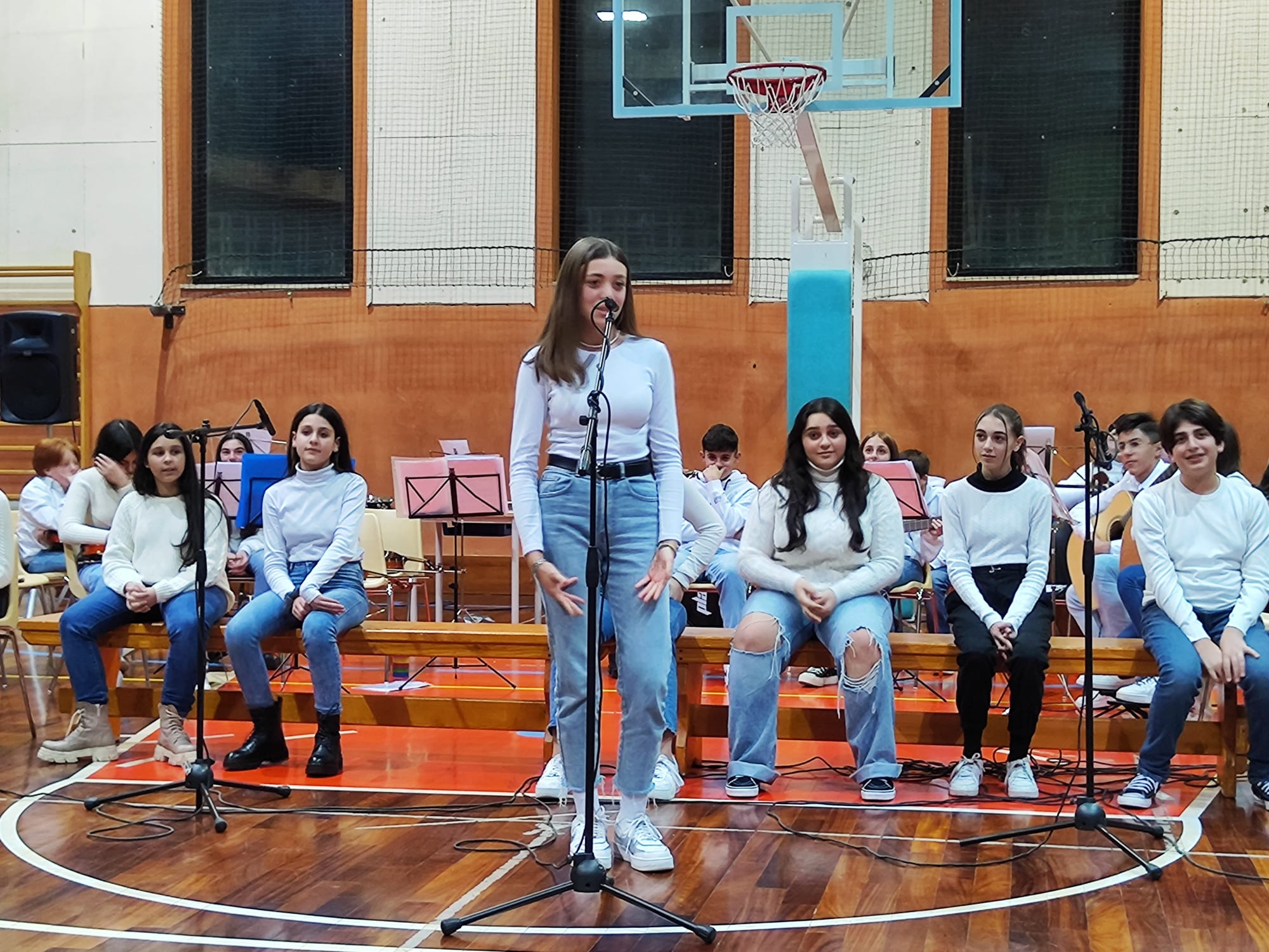Finalmente in presenza di un pubblico caloroso, si sono esibiti oggi pomeriggio, nella grande palestra del plesso Veneziano, il coro polifonico e l’orchestra didattica della scuola in cui piccoli e grandi hanno cantato e suonato insieme.