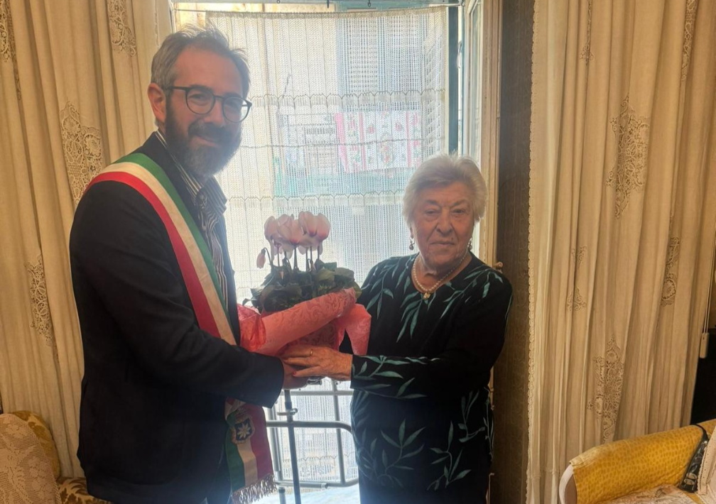La maestra monrealese Anna Di Mitri compie 102 anni, l’omaggio floreale del sindaco Arcidiacono