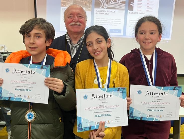 Alla finale nazionale dei Giochi Matematici del Mediterraneo 2024 tre alunni della Veneziano-Novelli. Mauro Cocchiara, primo classificato per la categoria S1 ( prima media) e Alessandra Giallombardo e Tosca Francesca…