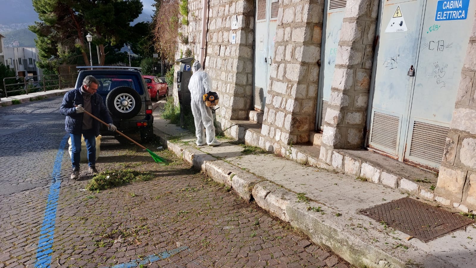 Percettori del reddito e volontari in azione a Monreale, oggi ripulito un marciapiedi