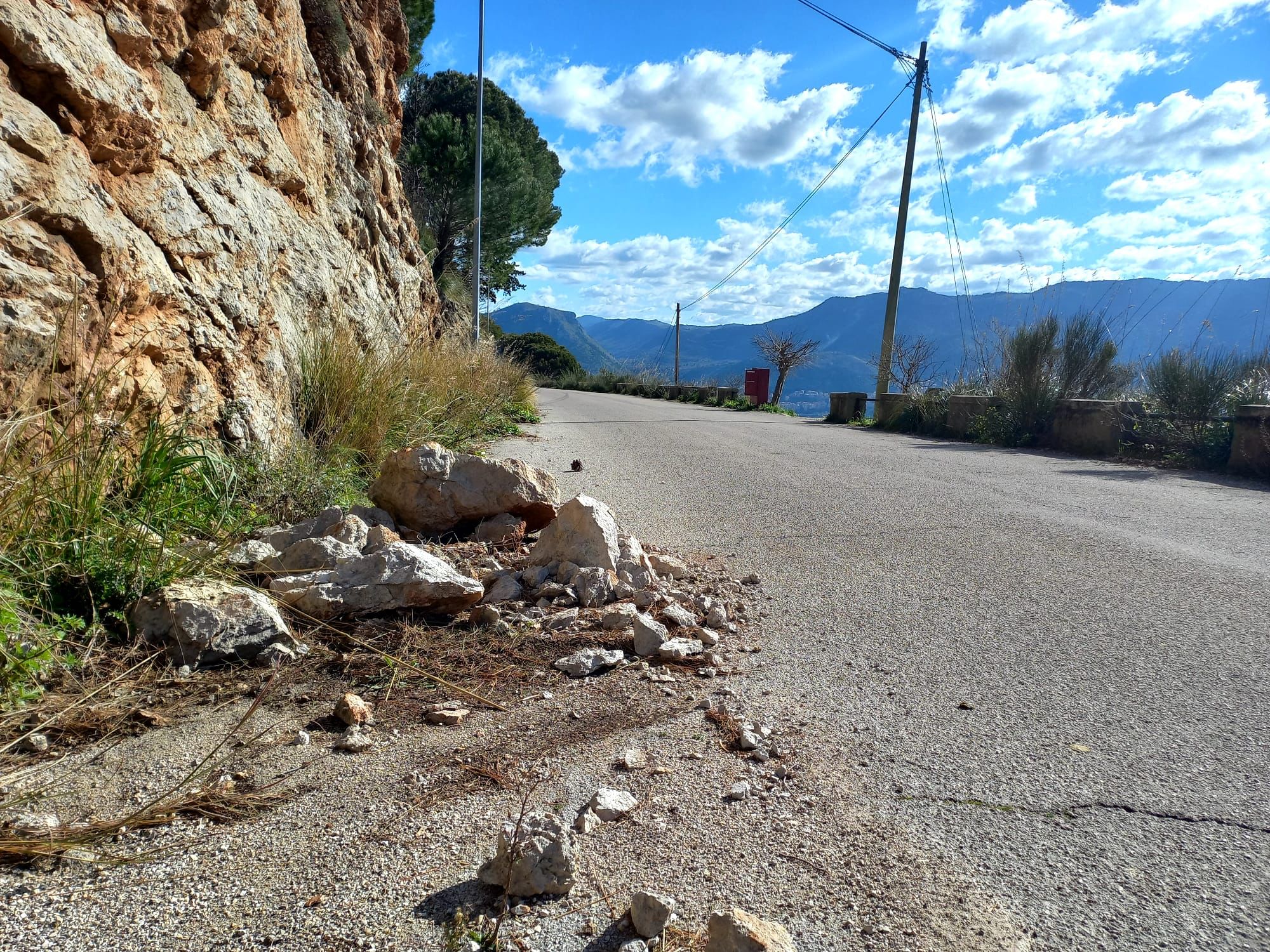 Cadono massi in via Regione siciliana, un pericolo per gli automobilisti
