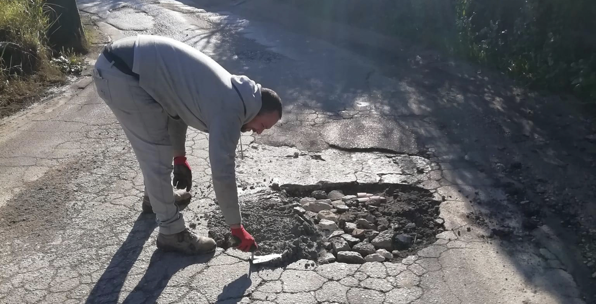 Degrado a Real Celsi, Il consigliere Mimmo Vittorino chiude le buche del ponticello