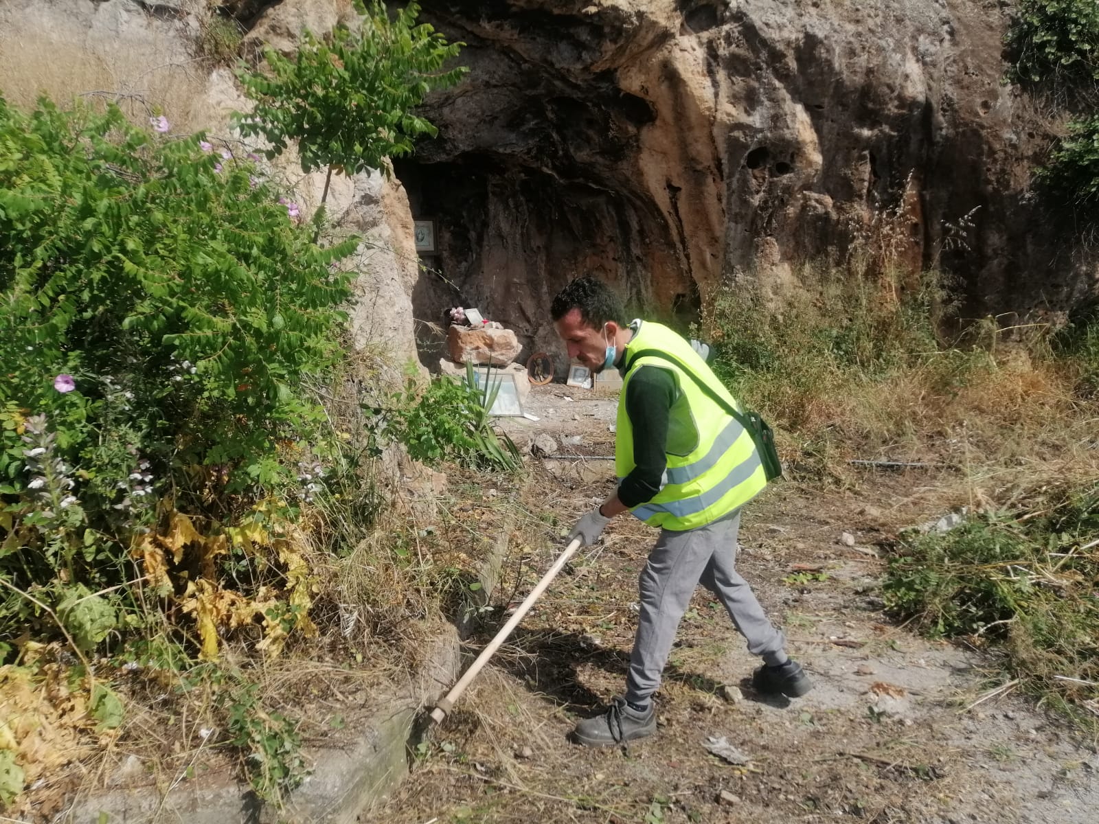 La grotta di via Regione Siciliana ripulita da un volontario