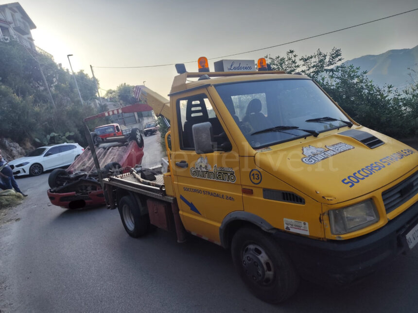 Incidente stradale a Monreale in via Regione Siciliana. Un'auto si ribalta all'alba: ragazzo alla guida ferito lievemente.