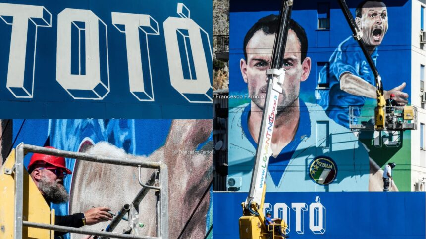 Inaugurato al CEP il murale in ricordo di Totò Schillaci: la corsa a braccia aperte immortalata per sempre