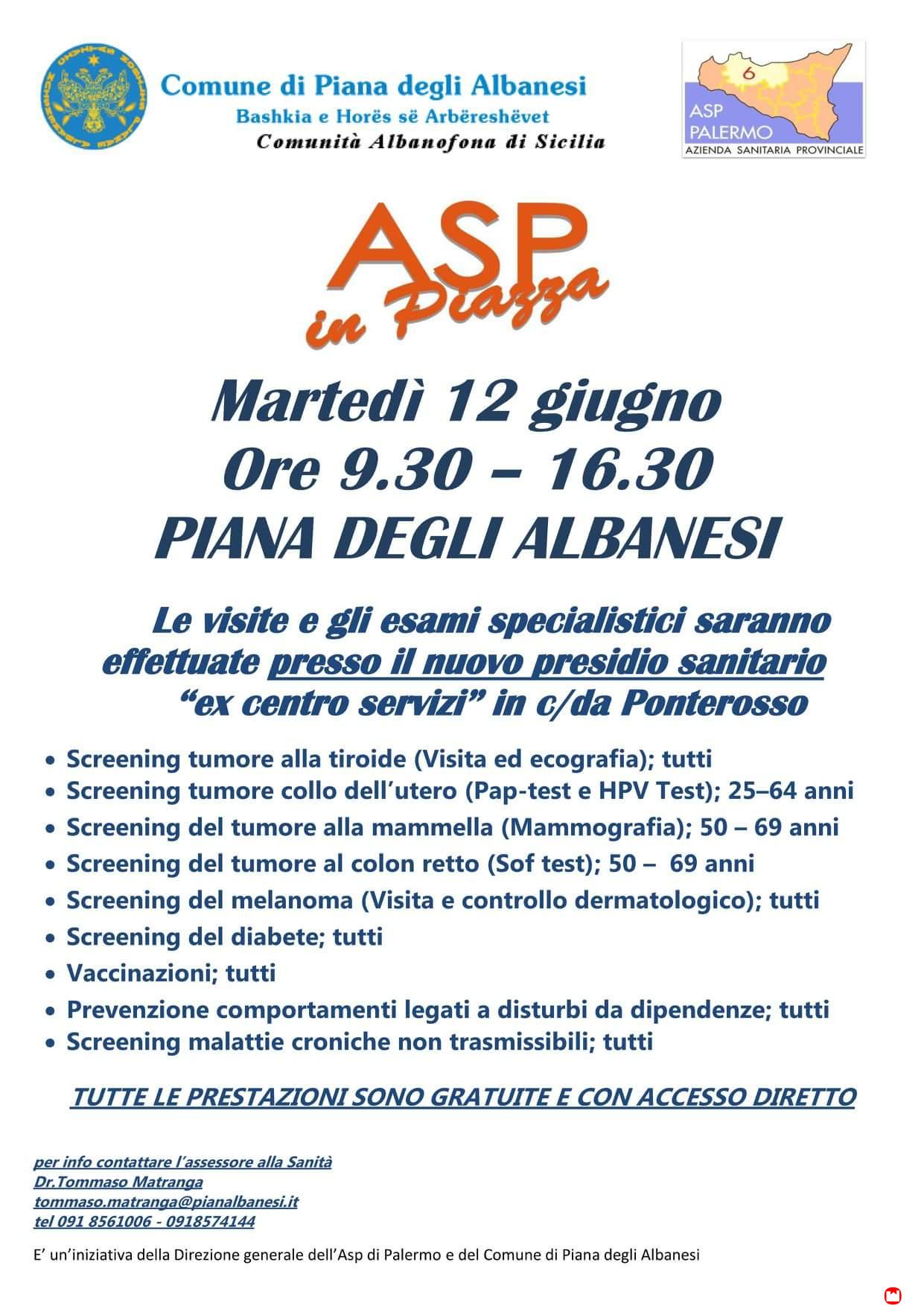 Piana degli Albanesi, esami gratis il 12 giugno. Petta: «Intesa per nuovi ambulatori specialistici»