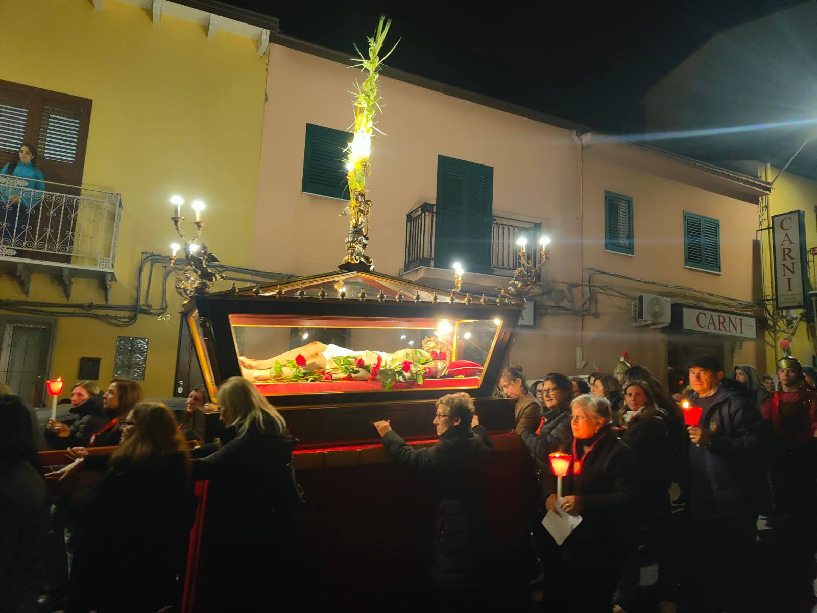 Tante persone dietro al corteo e tanti i giovani che si sono prestati come figuranti durante le celebrazioni della settimana Santa; padre Nicolò Napoli fin dal suo arrivo è stato in grado di coinvolgere sempre più persone e ieri sera è stata l’ennesima dimostrazione. Il parroco ha commentato così la processione di ieri: “Sono molto contento di come sia andata, ho visto tantissime persone partecipare durante le varie giornate che ci porteranno alla santa Pasqua. Ringrazio tutti i figuranti, tutte le donne e gli uomini che hanno portato le vare in processione per le vie del paese, le autorità e l’associazione Evergreen Protezione Civile per il supporto”.