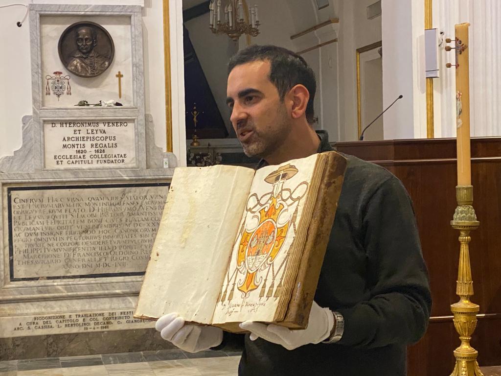 Anche se era una conferenza per bambini don Giovanni ha portato alcuni antichi documenti, mostrando quanto fossero importanti per ricostruire la storia: i bambini sono stati invitati a osservare quanto accadeva nel maggio 1575, quando in un registro notarile venivano elencati gli arredi più preziosi dell’antica chiesa che sorgeva nello stesso luogo dove poi sarebbe stata edificata la Collegiata. Fra quegli arredi c’era un grande crocifisso di autore sconosciuto, appeso al muro. Quindi, messe di lato le leggende, il Crocifisso era a Monreale diverse decenni prima dell’arrivo dell’arcivescovo Girolamo Venero, che però istituisce la festa.