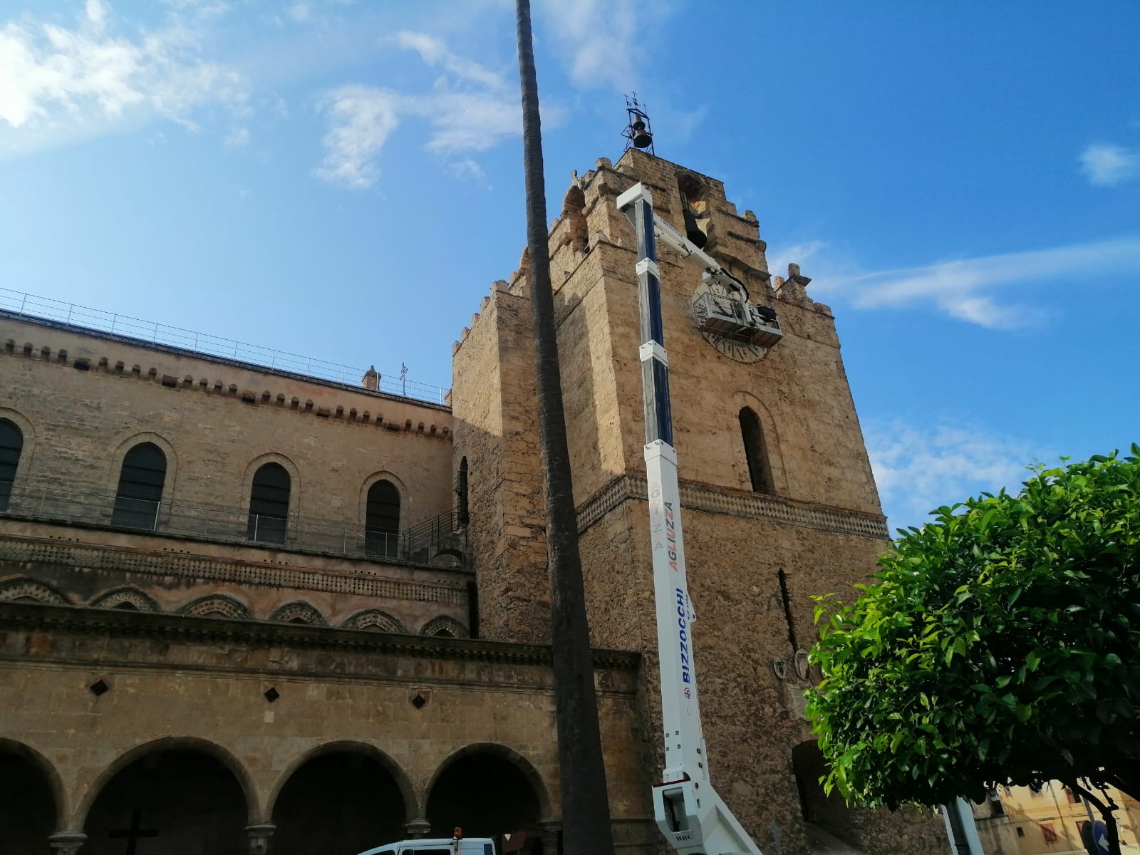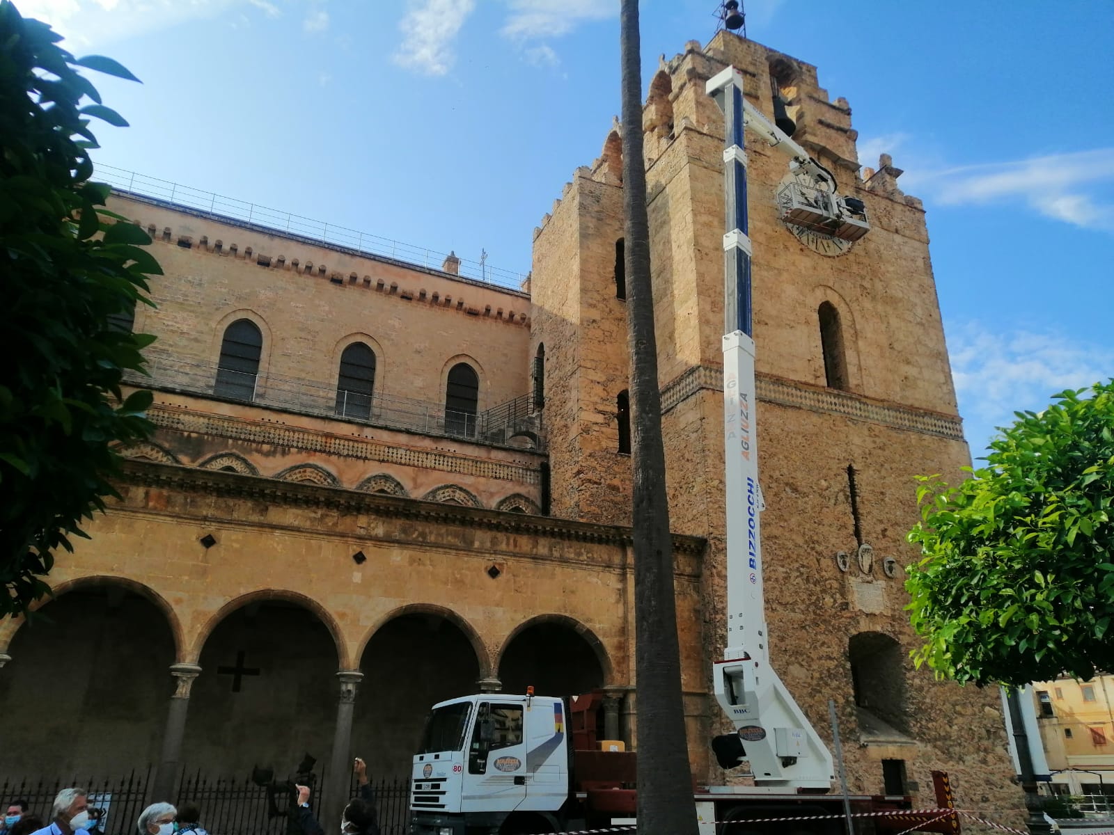 L’orologio del Duomo di Monreale tornerà a indicare l’ora. Tuam Nescis, (Non conosci la tua ora) si legge sul grande orologio che si trova nella torre normanna e che dopo 70 anni tornerà a girare. Questa mattina la ditta incaricata ha provveduto a togliere una delle due lancette per la sua sistemazione. Non appena saranno terminati i lavori, il grande orologio bianco tonerà a girare.