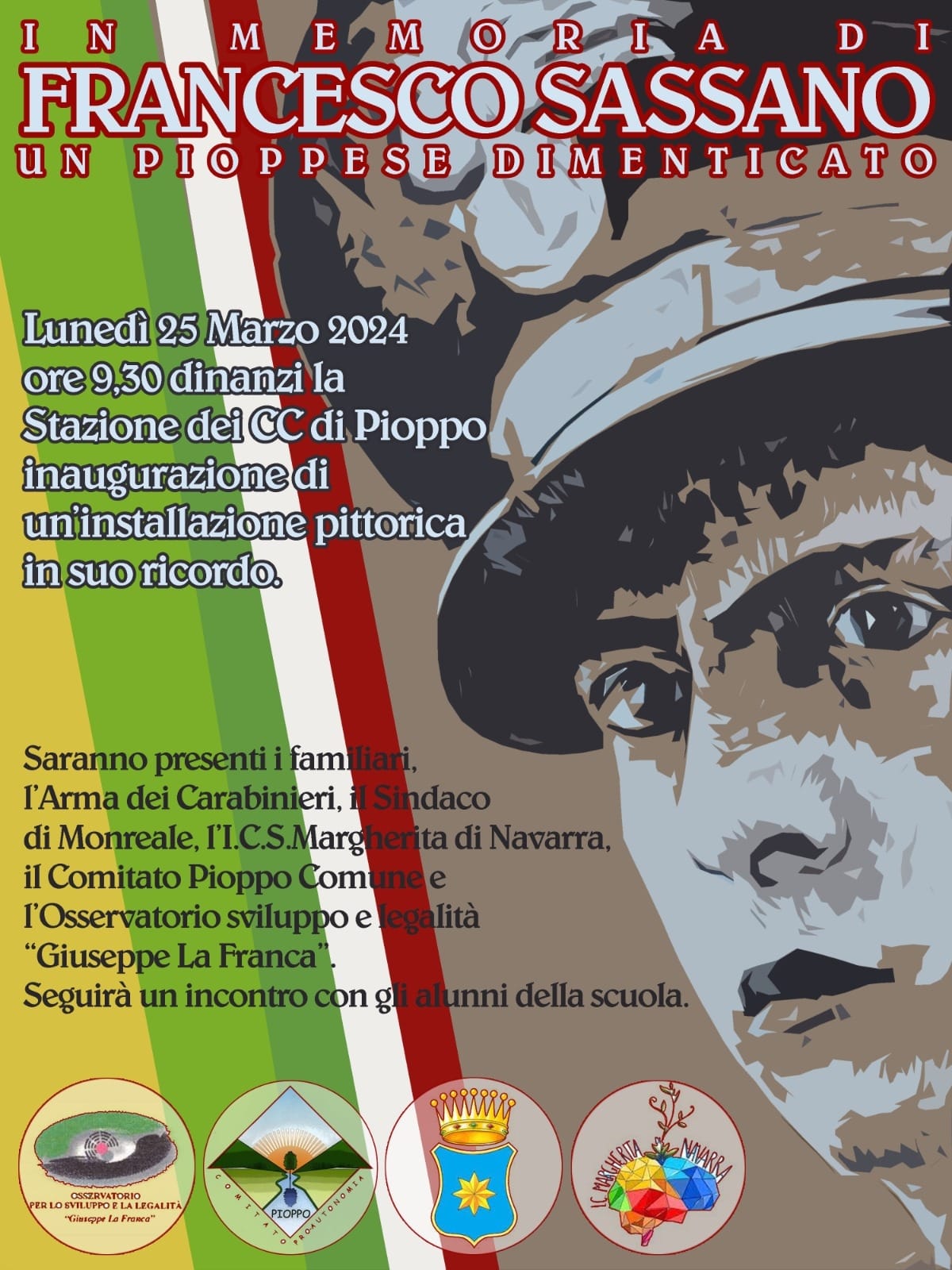 Lunedì 25 marzo alle ore 9:30 presso la stazione dei Carabinieri di Pioppo verrà inaugurata un’installazione pittorica in ricordo di Francesco Sassano.