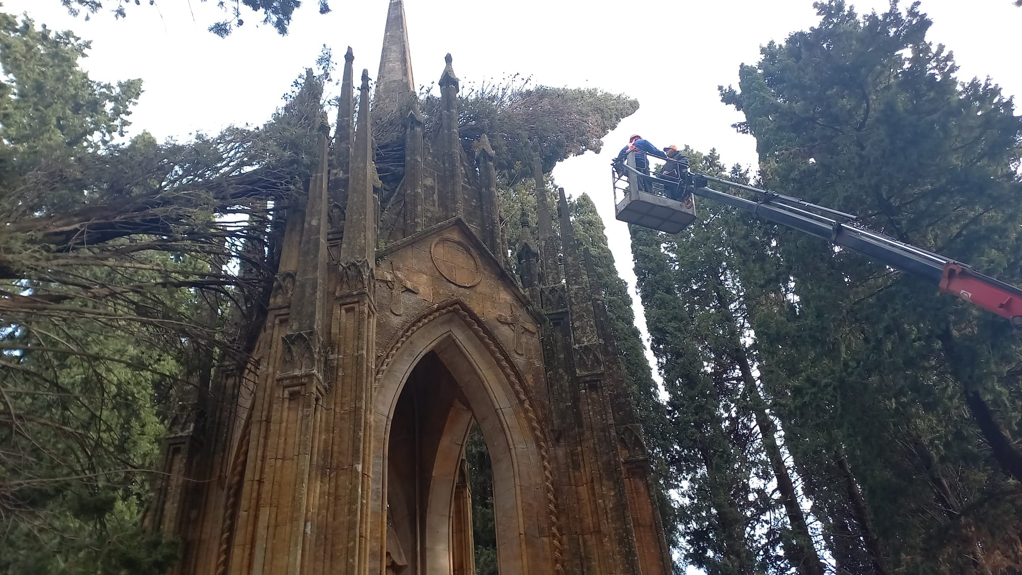 L’albero, a causa della sua caduta, ha causato danni alla struttura, un’opera di pregio dedicata a Santa Rosalia, alla quale era stata dedicata l’edificazione dell’intero cimitero monumentale. Alcuni pezzi si sono staccati e sono finiti per terra. I danni sono ancora in fase di quantificazione. Per fortuna l’albero è caduto quando il cimitero era chiuso al pubblico.