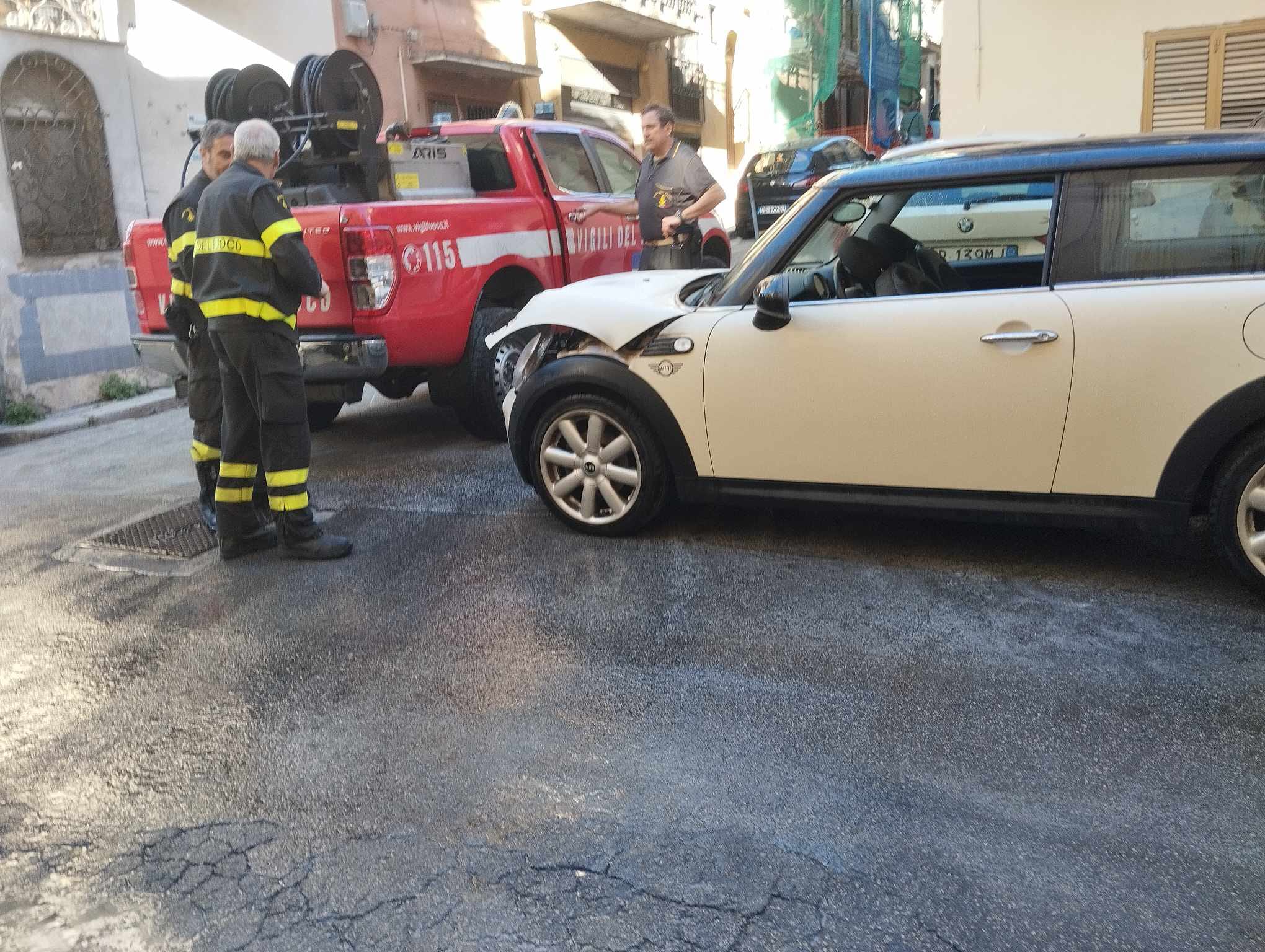 Monreale – Questa mattina un’automobile, una Mini, ha preso fuoco in via Antonio Veneziano, nei pressi della Chiesa di San Francesco. La persona alla guida del mezzo è riuscita a uscire fuori dall’auto e a mettersi in salvo per poi chiamare i vigili del fuoco.