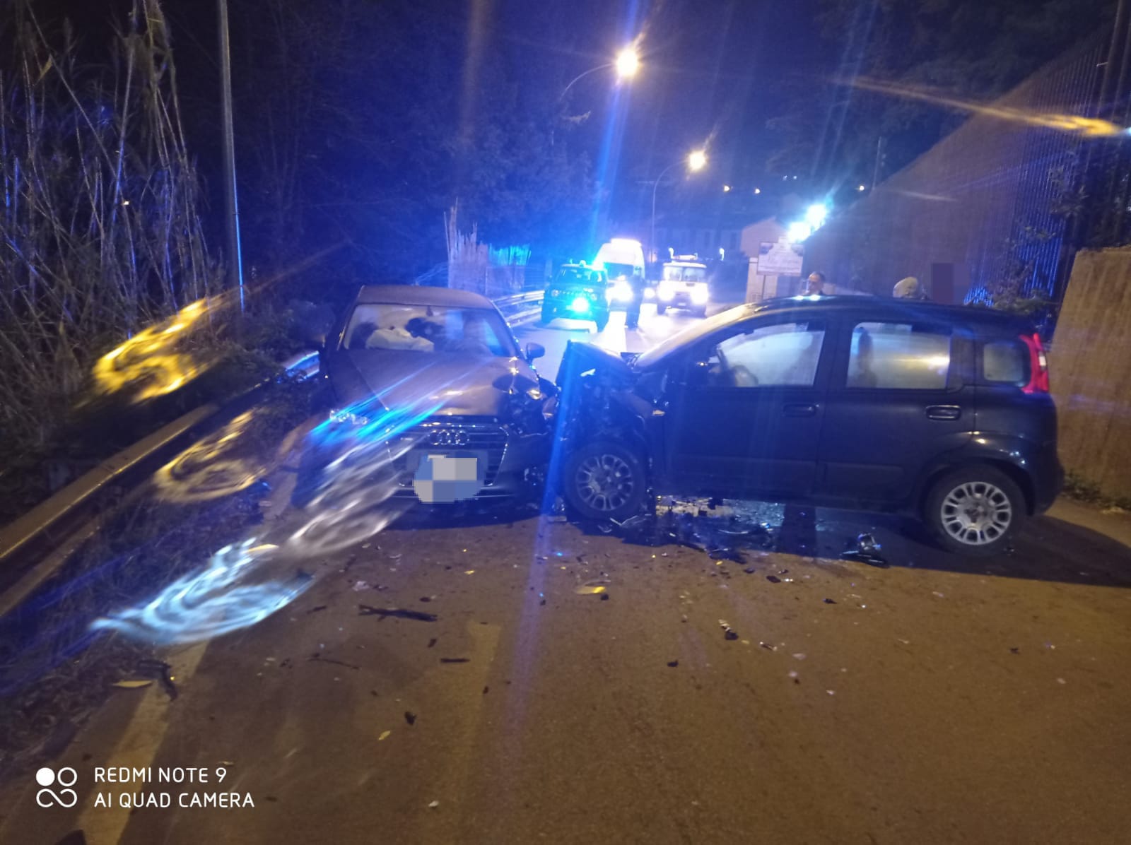 Il brutto scontro frontale fra due automobili ha causato ingenti danni a entrambe le vetture.