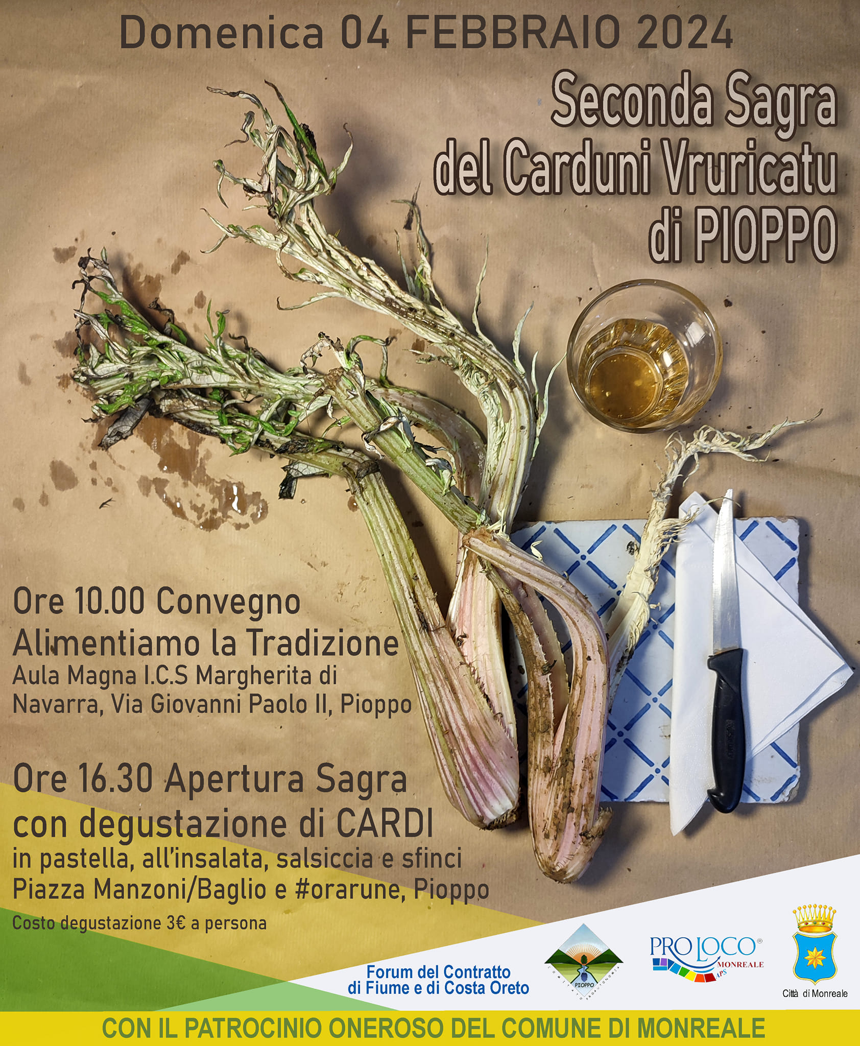 Dopo il successo dello scorso anno torna la “Sagra del carduni vruricatu” a Pioppo il 4 febbraio. Il Comitato Pioppo Comune in sinergia con la Proloco di Monreale ed il Comune di Monreale, che ha concesso il patrocinio oneroso, stanno lavorando ormai da settimane per l’ottima riuscita della seconda edizione di un’eccellenza pioppese che va tutelata e valorizzata.