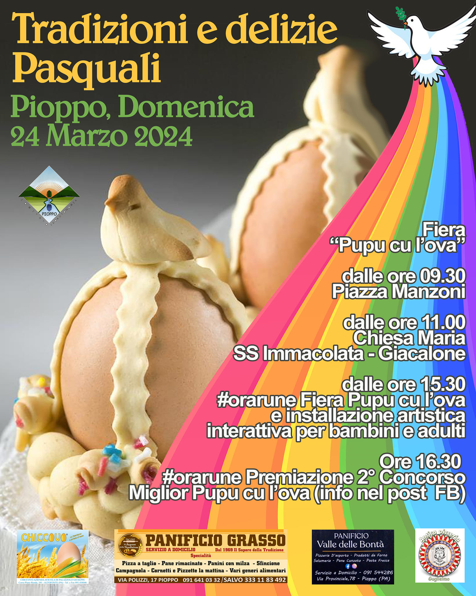 Anche quest’anno a Pioppo arriva la seconda edizione di: “Tradizioni e delizie Pasquali”, iniziativa pensata dal Comitato Pioppo Comune per la tutela e la promozione della tradizione locale del “Pupu cu l’ova”.