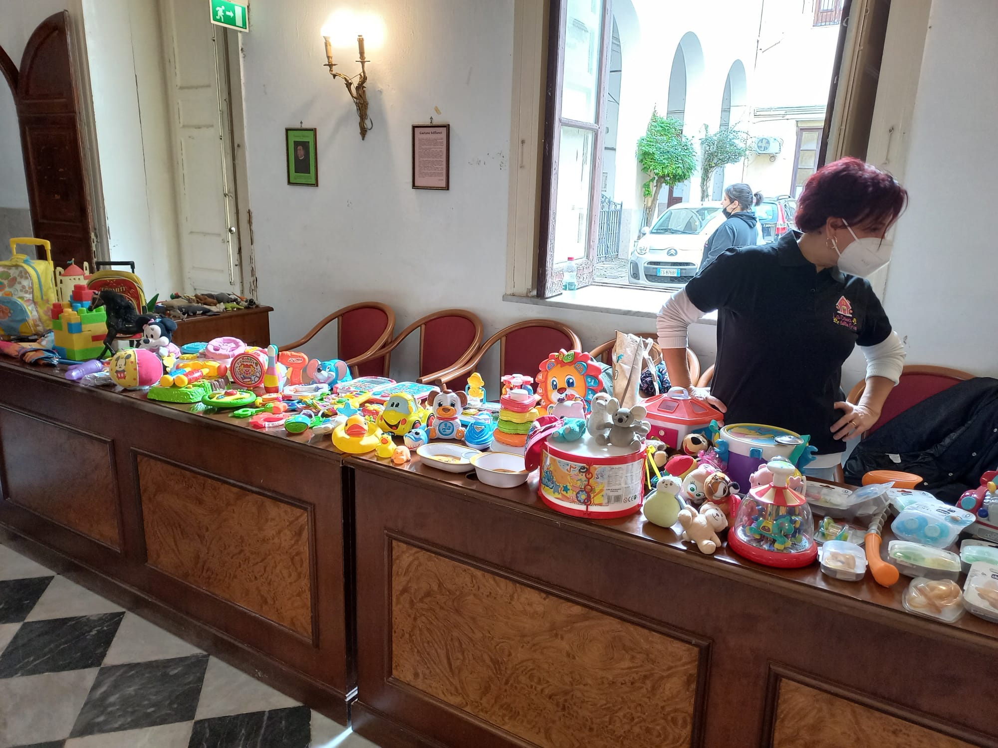 Erano circa 160 bimbi che con pazienza hanno aspettato per prendersi cio che poteva piacere. Donati macchinine, pelush, pattini, giochi da tavolo, puzzle, lego, bici e questa volta regali anche i più piccoli dai 3 mesi in poi: con ciucci, sonaglini, carion e poi cappellini, sciarpe.