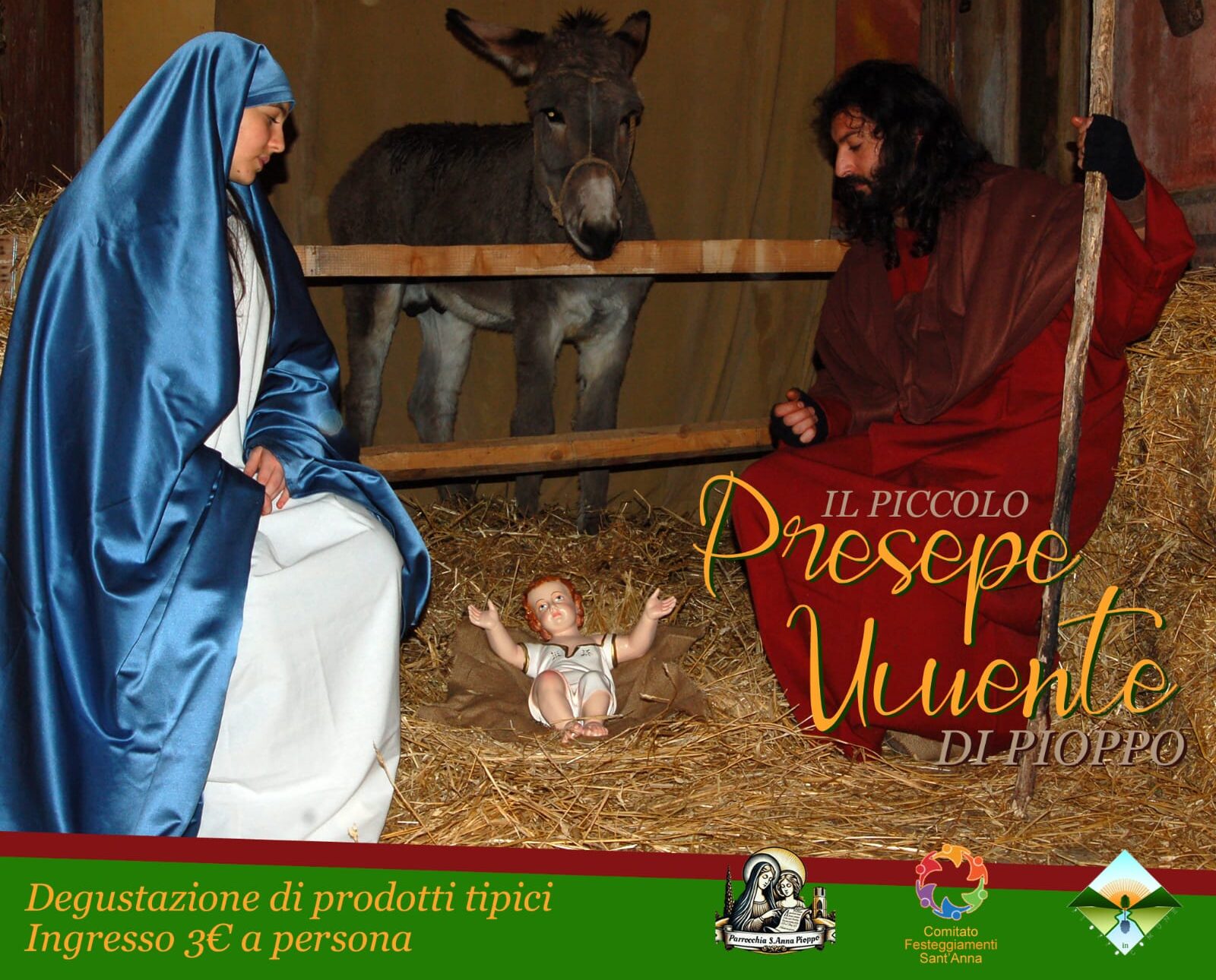 Il Piccolo Presepe Vivente è organizzato dalla Parrocchia Sant’Anna, dal Comitato Festeggiamenti Sant’Anna e dal Comitato Pioppo Comune. Sarà possibile visitare l’evento dalle 17.30 alle 20.00 in via Polizzi nei giorni 26 e 29 Dicembre 2024 e poi il 5 e 6 Gennaio 2025. Ingresso + degustazione 3€ a persona.