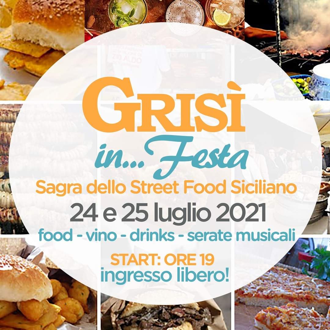 Ritorna l’immancabile appuntamento di “Grisì in Festa – Sagra dello Street Food Siciliano”. A Grisì, frazione di Monreale, a pochi minuti da Partinico, Alcamo e dai centri del Golfo di Castellammare, due imperdibili serate all’aria aperta, in cui saranno protagonisti lo Street Food Siciliano e i prodotti biologici del territorio, l’intrattenimento musicale, la leggerezza e il divertimento, che ci meritiamo dopo il tunnel dello scorso anno.