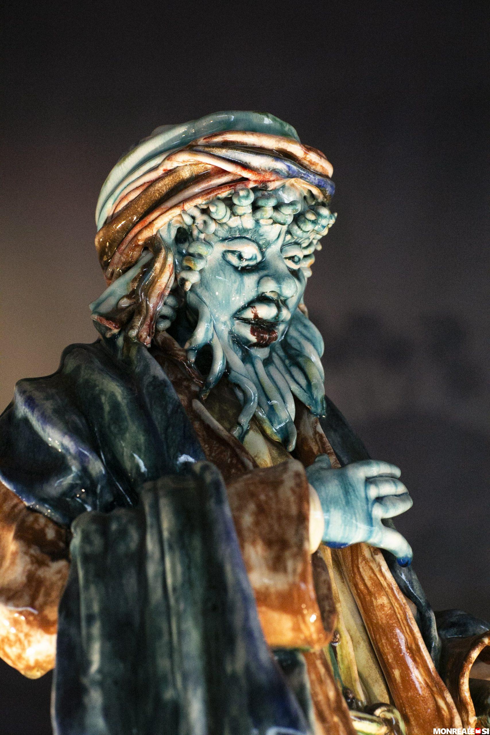 Ogni personaggio, infatti, porta la cifra artistica di Giuliano, di quel bambino diventano anziano tra l’argilla e con i colori cresciuti nel tempo di una vita.