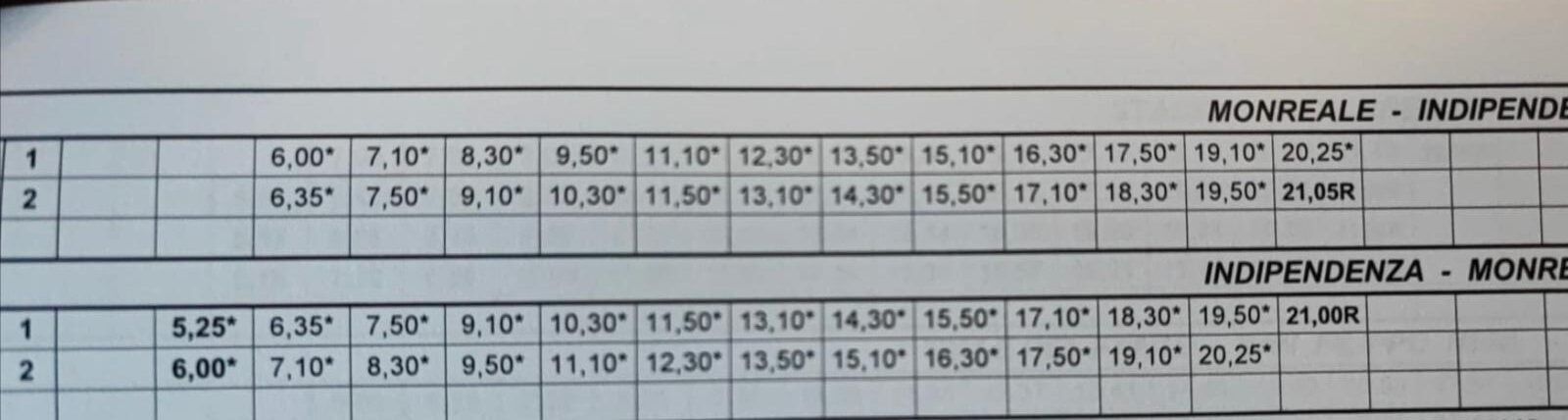 “Tutte le corse saranno eseguite in prolungamento da e per Monreale e pertanto in tale linea dovranno essere assegnate vetture normali (10m) che consentono l’esecuzione dell’inversione”.