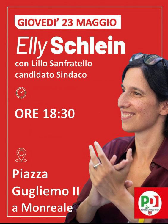Monreale – Elly Schlein, segretaria del Partito Democratico, a Monreale. La leader dei Dem salirà sul palchetto di Piazza Guglielmo II per sostenere la candidatura a sindaco di Lillo Sanfratello.