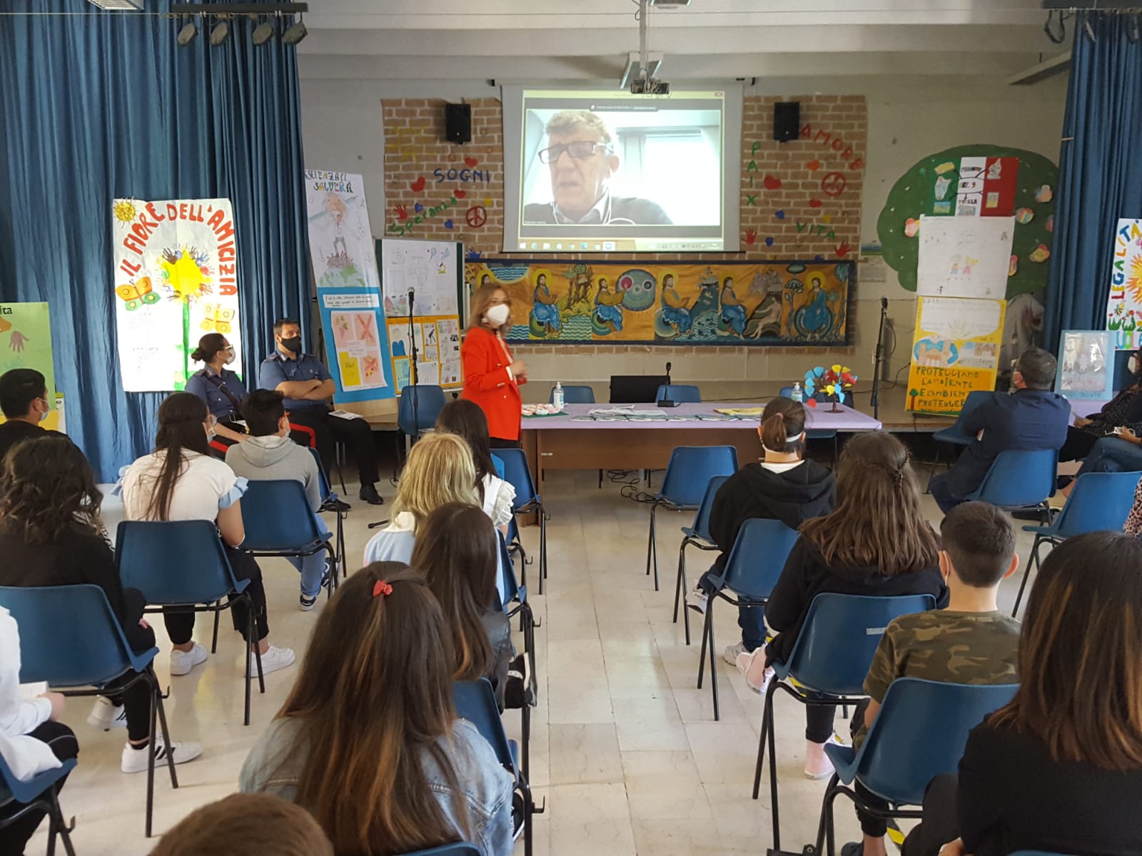 Nel salone della scuola ha quindi avuto inizio la seconda parte della giornata della legalità, con il collegamento da Bruxelles con l’europarlamentare Pietro Bartolo che ha raccontato a una rappresentanza di ragazzi della scuola secondaria di primo grado la sua esperienza di medico a Lampedusa, del suo impegno umano e professionale dove non sono mancati momenti di drammaticità per chi vede, nell’altro, non un “migrante” ma un essere umano, una persona adulta o un bambino a cui, a volte, l’arrivo del medico arriva troppo tardi e si rimane impotenti di fronte a un dramma che da trent’anni attraversa la nostra storia.