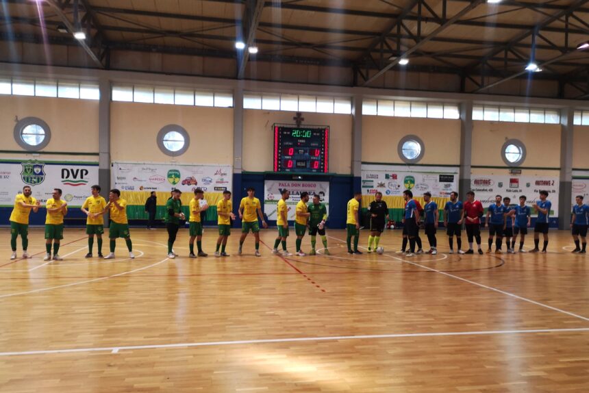 Il match è in bilico fino al 15′ minuto, quando sono gli ospiti del Sicilia Futsal a passare in vantaggio con la rete di Totta, bravi a sfruttare un errore in copertura dei ragazzi di mister Sciortino. Passano poco più di 5 minuti e Lanza realizza il suo 100esimo gol ufficiale, saltando il portiere e insaccando a porta sguarnita per l’1-1. Il primo tempo offre poco o niente più, se non qualche occasione sprecata dai gialloverdi per portarsi in vantaggio. Nel secondo tempo è forcing gialloverde totale, con i ragazzi in maglia gialloverde che le provano tutte per agguantare la vittoria, ma complici alcuni errori sotto porta, la sfortuna e una prestazione superba del portiere avversario, chiudono il match con lo stesso risultato maturato nel primo tempo.