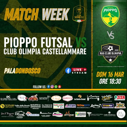Domenica pomeriggio presso il Pala Don Bosco di Palermo i gialloverdi del Pioppo Futsal torneranno in campo in occasione della ventunesima giornata del Campionato di Serie C2; a far visita ai pioppesi il Club Olimpia di Castellammare del Golfo. Dopo la sconfitta della scorsa settimana nel match ad alta quota contro il Palermo Futsal Club, i gialloverdi dovranno dimostrare il loro valore contro un’ottima formazione per tornare sulla giusta via dopo la prestazione sottotono del Tocha Stadium.