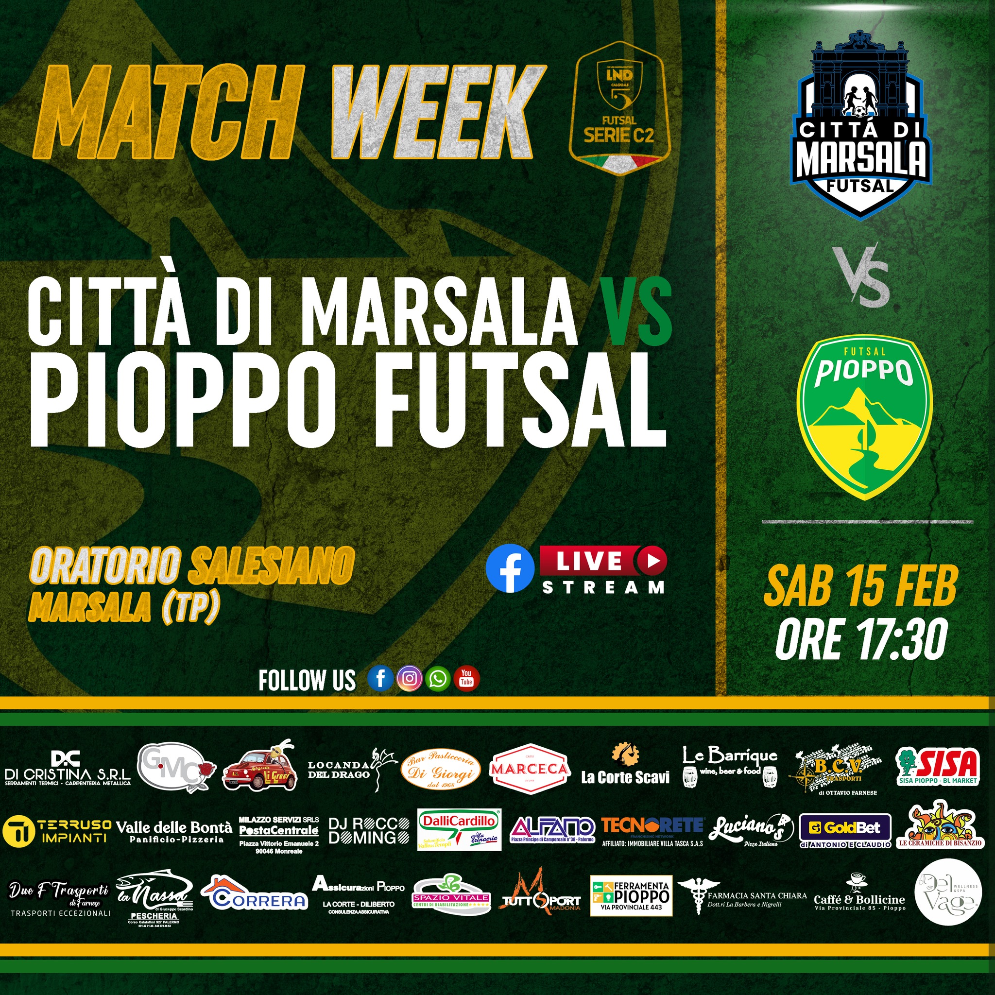 Appuntamento a sabato 15 febbraio presso l’Oratorio Don Bosco, sito in Via Dello Sbarco, 37, Marsala, calcio d’inizio previsto per le 17:30.