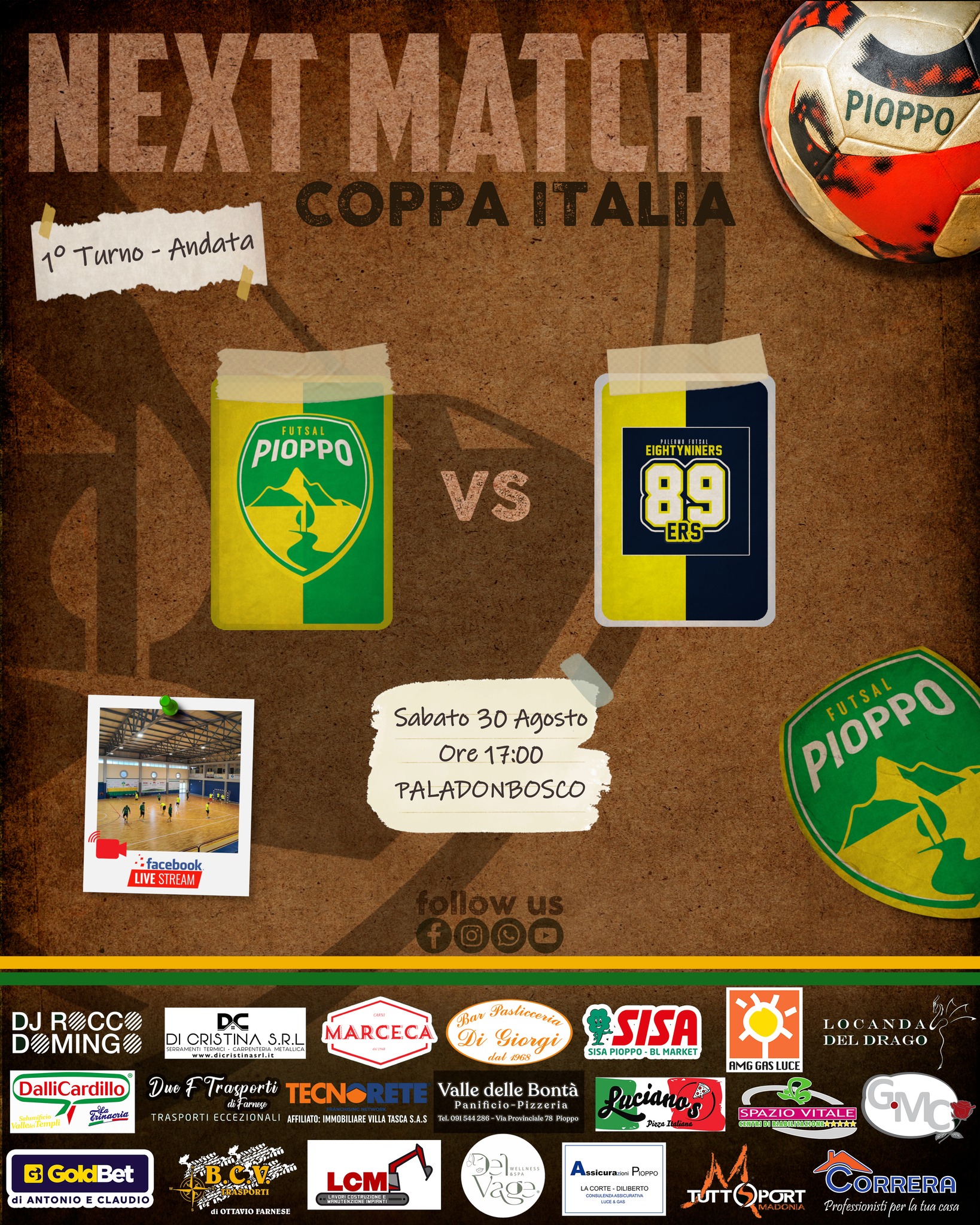 Appuntamento questo pomeriggio presso il Pala Don Bosco di Palermo, sito in Via San Domenico Savio 4, con calcio d’inizio previsto per le ore 17:00. Sarà possibile seguire il match in diretta streaming sulla pagina Facebook del Pioppo Futsal.